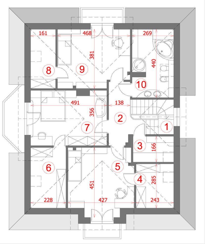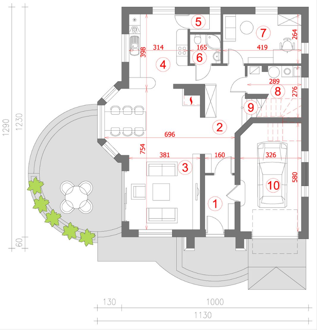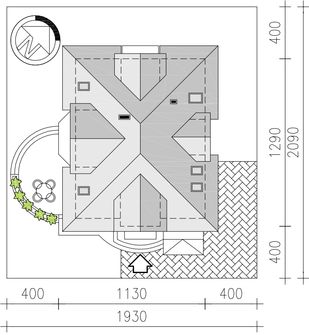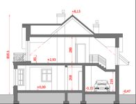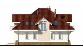 Graficzne opracowanie rzutów poglądowych widocznych na karcie projektu zostało wykonane przez Extradom.pl. Prezentowane przez Extradom.pl wizualizacje wykonane zostały przez autora projektu i należy poczytywać je jedynie za przykład i propozycję wykończenia, wizję architektoniczną autora projektu. Ostateczne wykończenie budynku może nastąpić na wiele sposobów. Szczegółowe rozwiązania zastosowane w oferowanej dokumentacji - w tym również ilość, lokalizacje i wygląd okien, drzwi, kominów - mogą w niewielkim stopniu różnić się od prezentowanej wizualizacji budynku.