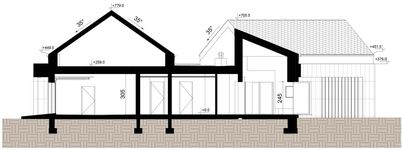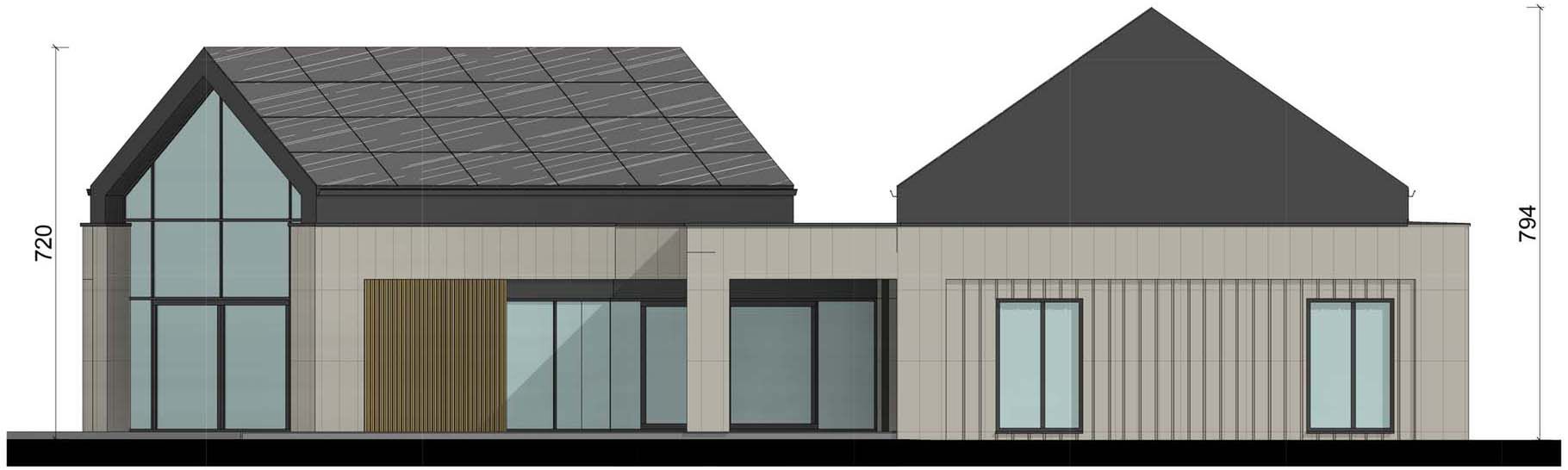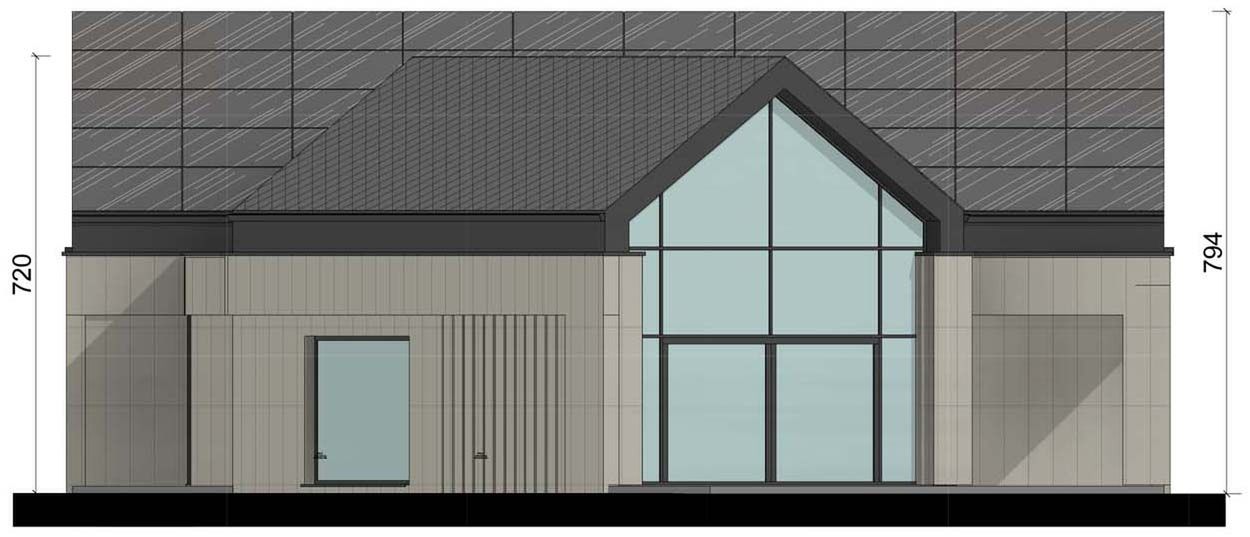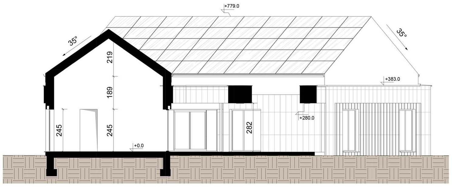 Posadowienie: ławy fundamentowe. Ściany zewnętrzne: bloczki silikatowe 24cm, Styropian 20 cm, tynk elewacyjny / spieki kwarcowe / drewno elewacyjne Strop i stropodach): monolityczny żelbetowy, pokrycie papa. Konstrukcja dachu: drewniana więźba dachowa krokwiowo – jętkowa. Pokrycie dachu: blacha na rąbek stojący.