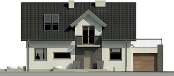 Graficzne opracowanie rzutów poglądowych widocznych na karcie projektu zostało wykonane przez Extradom.pl. Prezentowane przez Extradom.pl wizualizacje wykonane zostały przez autora projektu i należy poczytywać je jedynie za przykład i propozycję wykończenia, wizję architektoniczną autora projektu. Ostateczne wykończenie budynku może nastąpić na wiele sposobów. Szczegółowe rozwiązania zastosowane w oferowanej dokumentacji - w tym również ilość, lokalizacje i wygląd okien, drzwi, kominów - mogą w niewielkim stopniu różnić się od prezentowanej wizualizacji budynku.