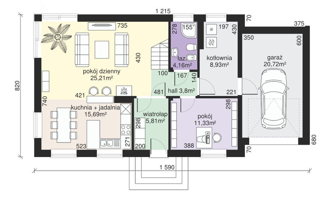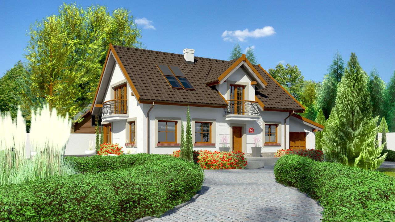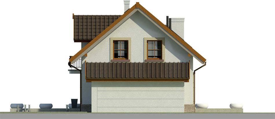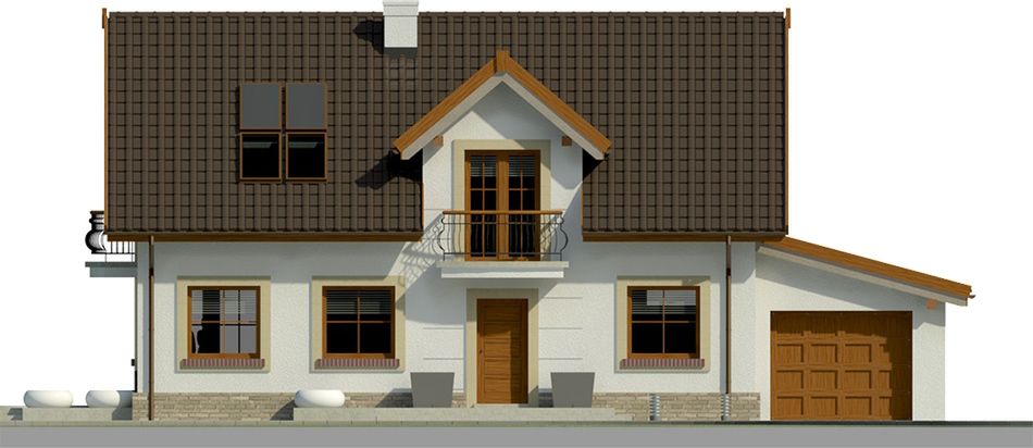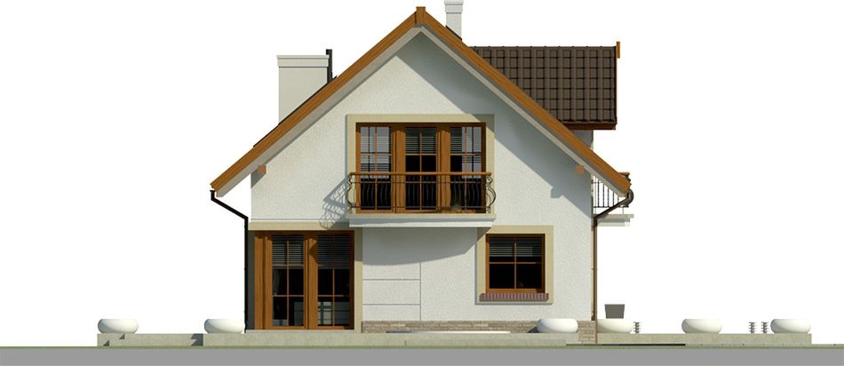 Graficzne opracowanie rzutów poglądowych widocznych na karcie projektu zostało wykonane przez Extradom.pl. Prezentowane przez Extradom.pl wizualizacje wykonane zostały przez autora projektu i należy poczytywać je jedynie za przykład i propozycję wykończenia, wizję architektoniczną autora projektu. Ostateczne wykończenie budynku może nastąpić na wiele sposobów. Szczegółowe rozwiązania zastosowane w oferowanej dokumentacji - w tym również ilość, lokalizacje i wygląd okien, drzwi, kominów - mogą w niewielkim stopniu różnić się od prezentowanej wizualizacji budynku.