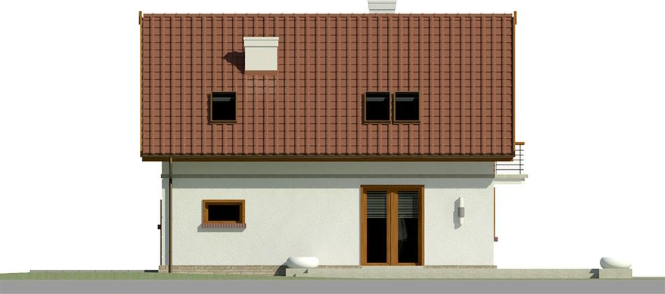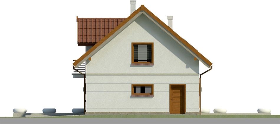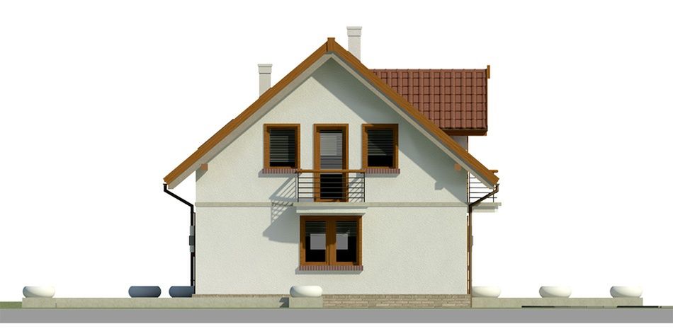 Graficzne opracowanie rzutów poglądowych widocznych na karcie projektu zostało wykonane przez Extradom.pl. Prezentowane przez Extradom.pl wizualizacje wykonane zostały przez autora projektu i należy poczytywać je jedynie za przykład i propozycję wykończenia, wizję architektoniczną autora projektu. Ostateczne wykończenie budynku może nastąpić na wiele sposobów. Szczegółowe rozwiązania zastosowane w oferowanej dokumentacji - w tym również ilość, lokalizacje i wygląd okien, drzwi, kominów - mogą w niewielkim stopniu różnić się od prezentowanej wizualizacji budynku.