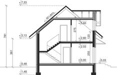 Ściany zewnętrzne: pustak 25 cm, styropian 15 cm. Ściany nośne: pustak 25 cm. Strop: monolityczny żelbetowy. Dach: kąt nachylenia 40°, pokrycie - dachówka ceramiczna lub betonowa.
