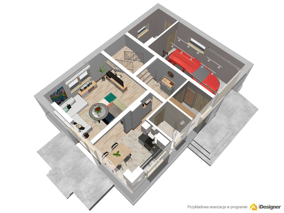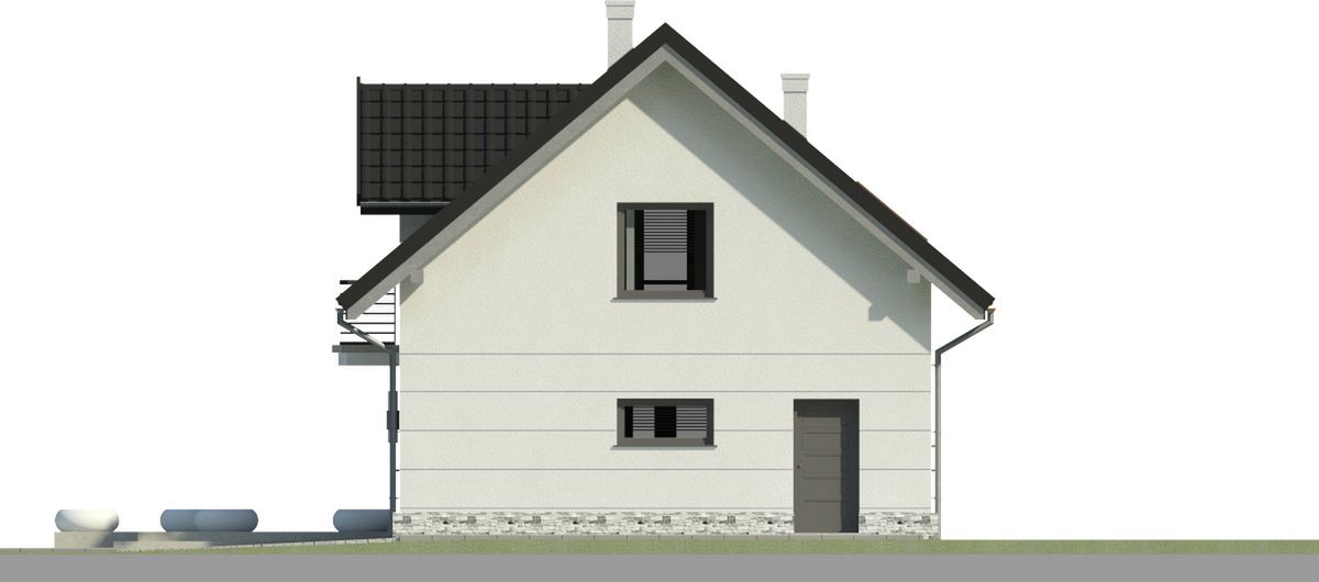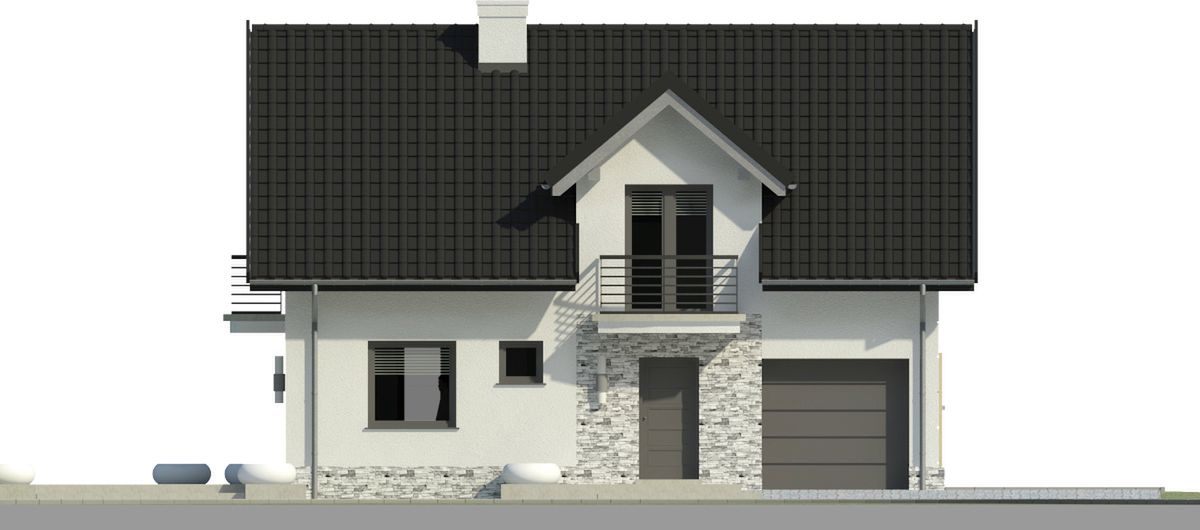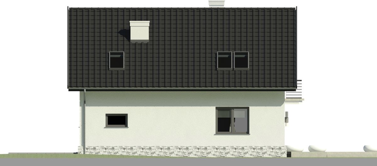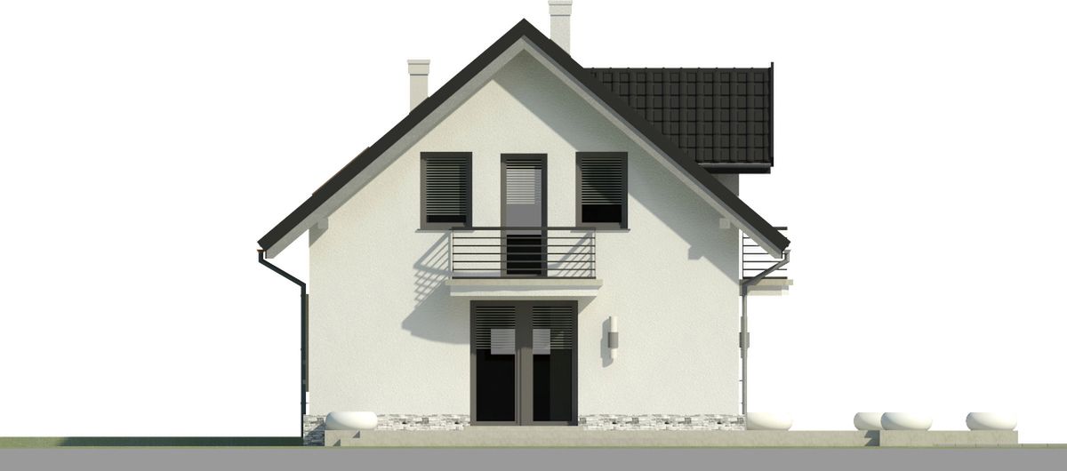 Graficzne opracowanie rzutów poglądowych widocznych na karcie projektu zostało wykonane przez Extradom.pl. Prezentowane przez Extradom.pl wizualizacje wykonane zostały przez autora projektu i należy poczytywać je jedynie za przykład i propozycję wykończenia, wizję architektoniczną autora projektu. Ostateczne wykończenie budynku może nastąpić na wiele sposobów. Szczegółowe rozwiązania zastosowane w oferowanej dokumentacji - w tym również ilość, lokalizacje i wygląd okien, drzwi, kominów - mogą w niewielkim stopniu różnić się od prezentowanej wizualizacji budynku.