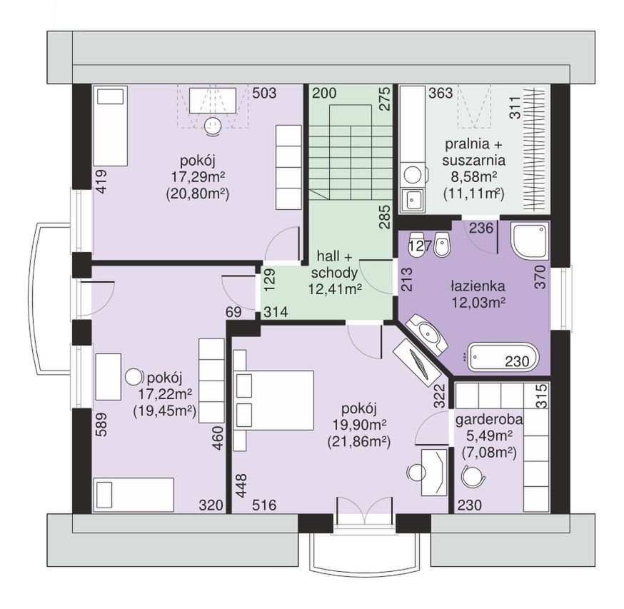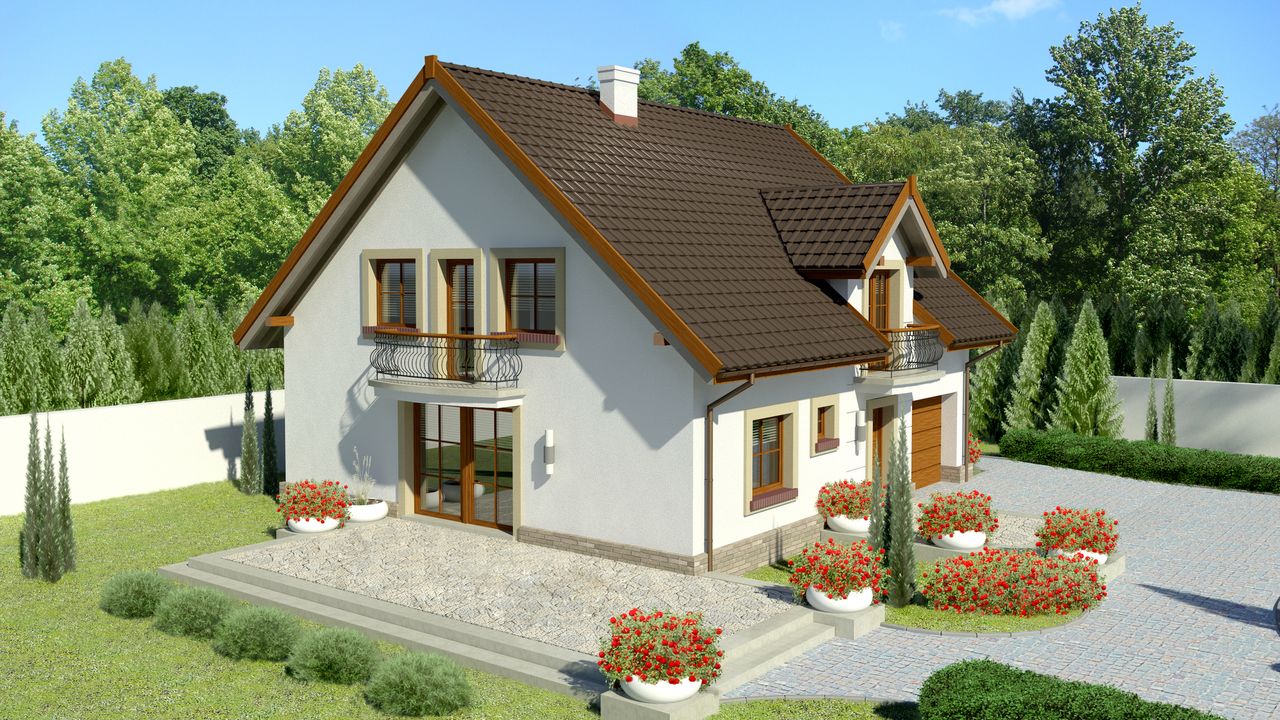 Graficzne opracowanie rzutów poglądowych widocznych na karcie projektu zostało wykonane przez Extradom.pl. Prezentowane przez Extradom.pl wizualizacje wykonane zostały przez autora projektu i należy poczytywać je jedynie za przykład i propozycję wykończenia, wizję architektoniczną autora projektu. Ostateczne wykończenie budynku może nastąpić na wiele sposobów. Szczegółowe rozwiązania zastosowane w oferowanej dokumentacji - w tym również ilość, lokalizacje i wygląd okien, drzwi, kominów - mogą w niewielkim stopniu różnić się od prezentowanej wizualizacji budynku.