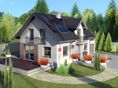 Graficzne opracowanie rzutów poglądowych widocznych na karcie projektu zostało wykonane przez Extradom.pl. Prezentowane przez Extradom.pl wizualizacje wykonane zostały przez autora projektu i należy poczytywać je jedynie za przykład i propozycję wykończenia, wizję architektoniczną autora projektu. Ostateczne wykończenie budynku może nastąpić na wiele sposobów. Szczegółowe rozwiązania zastosowane w oferowanej dokumentacji - w tym również ilość, lokalizacje i wygląd okien, drzwi, kominów - mogą w niewielkim stopniu różnić się od prezentowanej wizualizacji budynku.