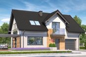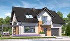 Graficzne opracowanie rzutów poglądowych widocznych na karcie projektu zostało wykonane przez Extradom.pl. Prezentowane przez Extradom.pl wizualizacje wykonane zostały przez autora projektu i należy poczytywać je jedynie za przykład i propozycję wykończenia, wizję architektoniczną autora projektu. Ostateczne wykończenie budynku może nastąpić na wiele sposobów. Szczegółowe rozwiązania zastosowane w oferowanej dokumentacji - w tym również ilość, lokalizacje i wygląd okien, drzwi, kominów - mogą w niewielkim stopniu różnić się od prezentowanej wizualizacji budynku.