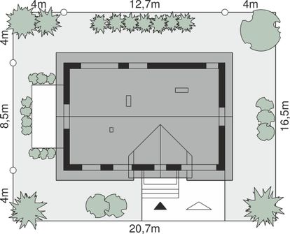 Graficzne opracowanie rzutów poglądowych widocznych na karcie projektu zostało wykonane przez Extradom.pl. Prezentowane przez Extradom.pl wizualizacje wykonane zostały przez autora projektu i należy poczytywać je jedynie za przykład i propozycję wykończenia, wizję architektoniczną autora projektu. Ostateczne wykończenie budynku może nastąpić na wiele sposobów. Szczegółowe rozwiązania zastosowane w oferowanej dokumentacji - w tym również ilość, lokalizacje i wygląd okien, drzwi, kominów - mogą w niewielkim stopniu różnić się od prezentowanej wizualizacji budynku.