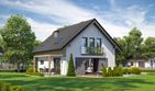 Graficzne opracowanie rzutów poglądowych widocznych na karcie projektu zostało wykonane przez Extradom.pl. Prezentowane przez Extradom.pl wizualizacje wykonane zostały przez autora projektu i należy poczytywać je jedynie za przykład i propozycję wykończenia, wizję architektoniczną autora projektu. Ostateczne wykończenie budynku może nastąpić na wiele sposobów. Szczegółowe rozwiązania zastosowane w oferowanej dokumentacji - w tym również ilość, lokalizacje i wygląd okien, drzwi, kominów - mogą w niewielkim stopniu różnić się od prezentowanej wizualizacji budynku.