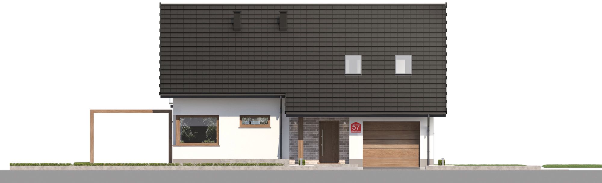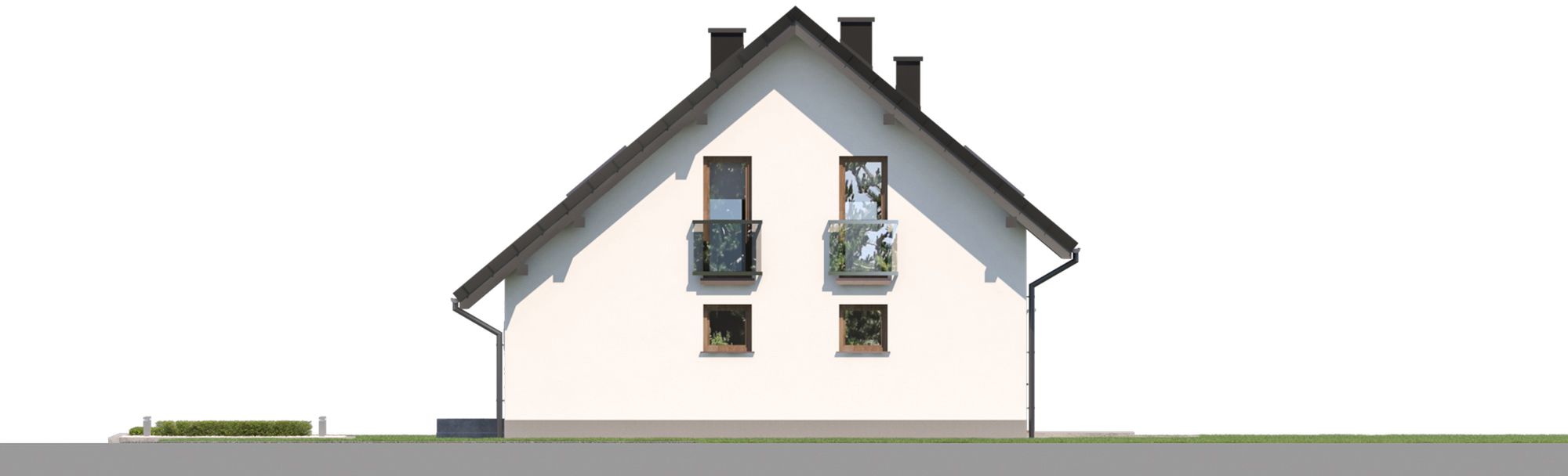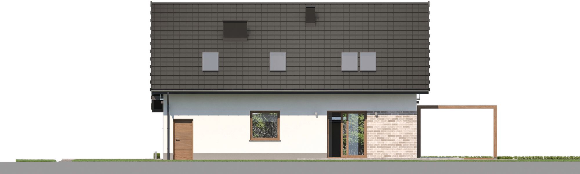 Graficzne opracowanie rzutów poglądowych widocznych na karcie projektu zostało wykonane przez Extradom.pl. Prezentowane przez Extradom.pl wizualizacje wykonane zostały przez autora projektu i należy poczytywać je jedynie za przykład i propozycję wykończenia, wizję architektoniczną autora projektu. Ostateczne wykończenie budynku może nastąpić na wiele sposobów. Szczegółowe rozwiązania zastosowane w oferowanej dokumentacji - w tym również ilość, lokalizacje i wygląd okien, drzwi, kominów - mogą w niewielkim stopniu różnić się od prezentowanej wizualizacji budynku.
