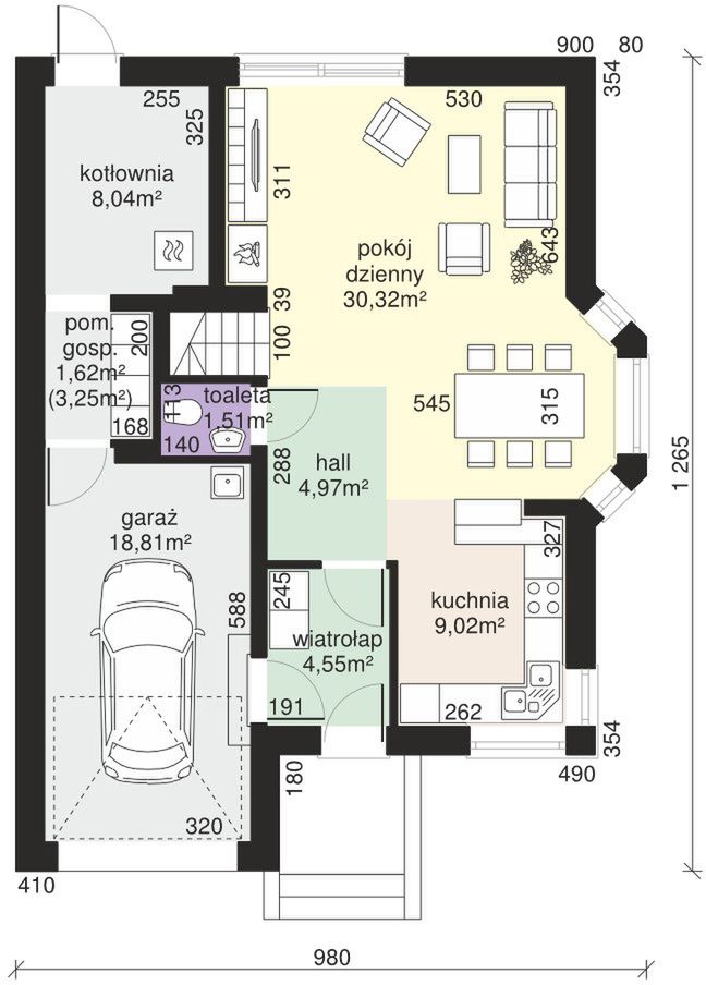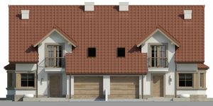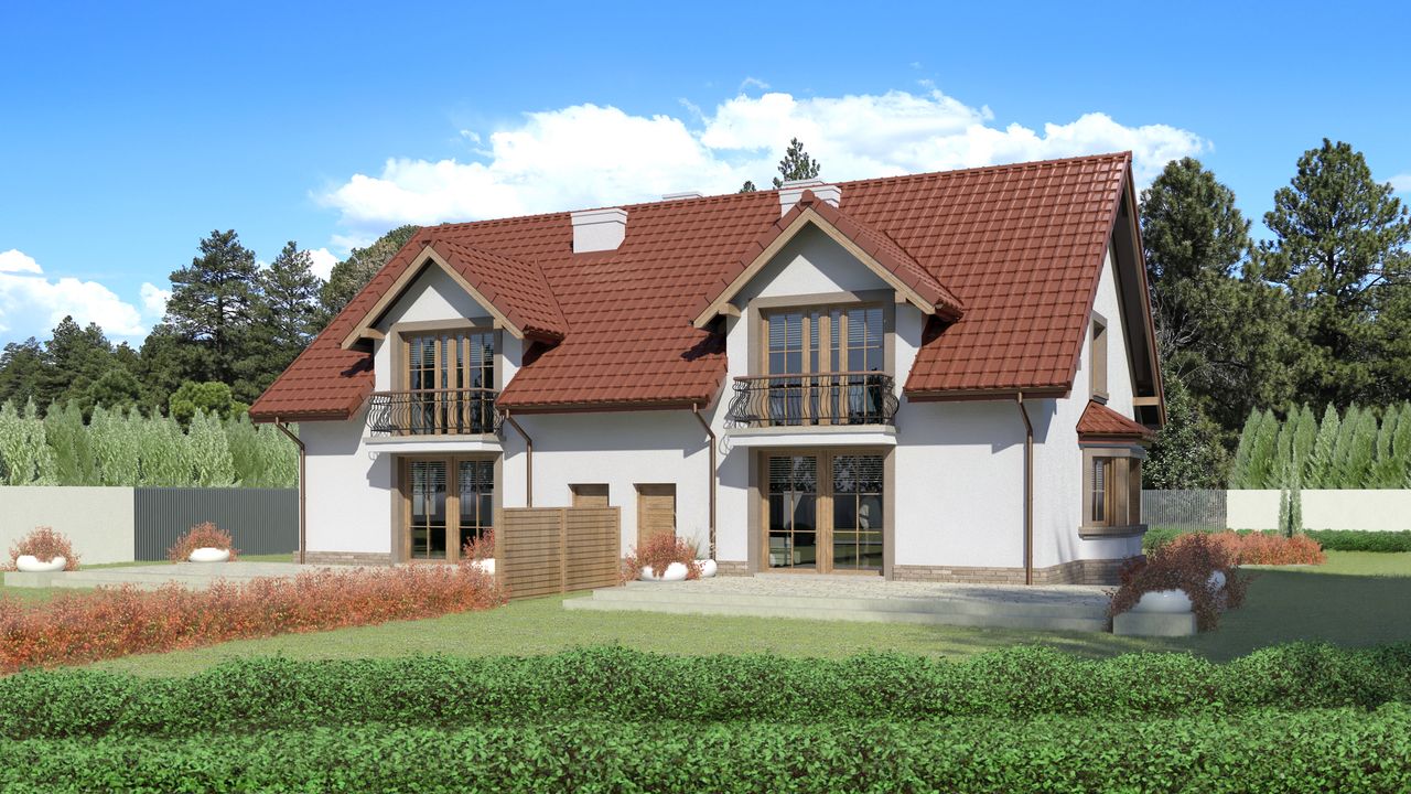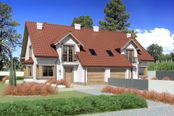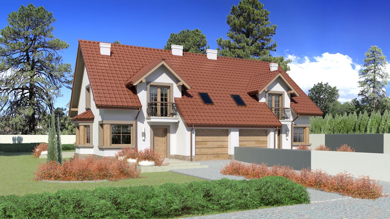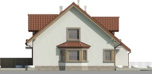 Graficzne opracowanie rzutów poglądowych widocznych na karcie projektu zostało wykonane przez Extradom.pl. Prezentowane przez Extradom.pl wizualizacje wykonane zostały przez autora projektu i należy poczytywać je jedynie za przykład i propozycję wykończenia, wizję architektoniczną autora projektu. Ostateczne wykończenie budynku może nastąpić na wiele sposobów. Szczegółowe rozwiązania zastosowane w oferowanej dokumentacji - w tym również ilość, lokalizacje i wygląd okien, drzwi, kominów - mogą w niewielkim stopniu różnić się od prezentowanej wizualizacji budynku.