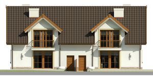 Graficzne opracowanie rzutów poglądowych widocznych na karcie projektu zostało wykonane przez Extradom.pl. Prezentowane przez Extradom.pl wizualizacje wykonane zostały przez autora projektu i należy poczytywać je jedynie za przykład i propozycję wykończenia, wizję architektoniczną autora projektu. Ostateczne wykończenie budynku może nastąpić na wiele sposobów. Szczegółowe rozwiązania zastosowane w oferowanej dokumentacji - w tym również ilość, lokalizacje i wygląd okien, drzwi, kominów - mogą w niewielkim stopniu różnić się od prezentowanej wizualizacji budynku.