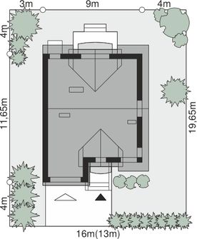 Ściany zewnętrzne: pustak 25 cm, styropian 20 cm. Ściany nośne: pustak 25 cm. Strop: monolityczny żelbetowy. Dach: kąt nachylenia 40°, pokrycie - dachówka ceramiczna lub betonowa. Instalacja solarna.
