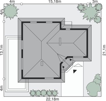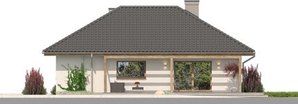 Graficzne opracowanie rzutów poglądowych widocznych na karcie projektu zostało wykonane przez Extradom.pl. Prezentowane przez Extradom.pl wizualizacje wykonane zostały przez autora projektu i należy poczytywać je jedynie za przykład i propozycję wykończenia, wizję architektoniczną autora projektu. Ostateczne wykończenie budynku może nastąpić na wiele sposobów. Szczegółowe rozwiązania zastosowane w oferowanej dokumentacji - w tym również ilość, lokalizacje i wygląd okien, drzwi, kominów - mogą w niewielkim stopniu różnić się od prezentowanej wizualizacji budynku.