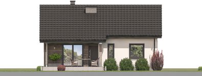 Graficzne opracowanie rzutów poglądowych widocznych na karcie projektu zostało wykonane przez Extradom.pl. Prezentowane przez Extradom.pl wizualizacje wykonane zostały przez autora projektu i należy poczytywać je jedynie za przykład i propozycję wykończenia, wizję architektoniczną autora projektu. Ostateczne wykończenie budynku może nastąpić na wiele sposobów. Szczegółowe rozwiązania zastosowane w oferowanej dokumentacji - w tym również ilość, lokalizacje i wygląd okien, drzwi, kominów - mogą w niewielkim stopniu różnić się od prezentowanej wizualizacji budynku.