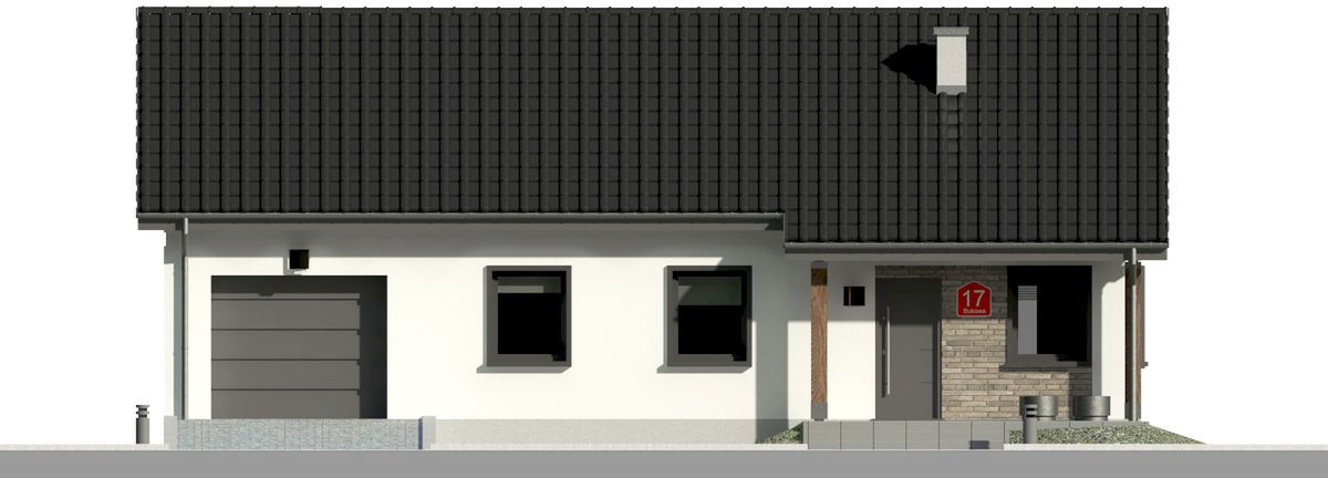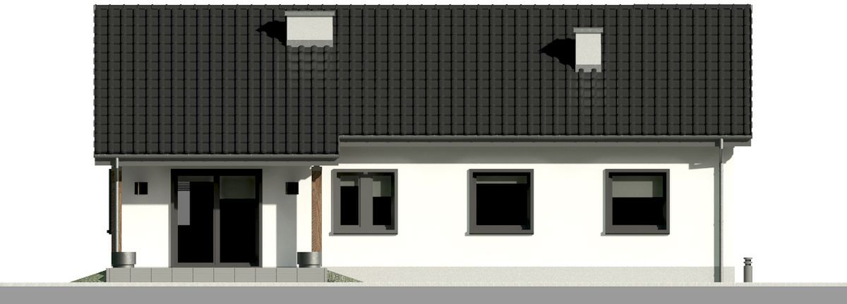 Graficzne opracowanie rzutów poglądowych widocznych na karcie projektu zostało wykonane przez Extradom.pl. Prezentowane przez Extradom.pl wizualizacje wykonane zostały przez autora projektu i należy poczytywać je jedynie za przykład i propozycję wykończenia, wizję architektoniczną autora projektu. Ostateczne wykończenie budynku może nastąpić na wiele sposobów. Szczegółowe rozwiązania zastosowane w oferowanej dokumentacji - w tym również ilość, lokalizacje i wygląd okien, drzwi, kominów - mogą w niewielkim stopniu różnić się od prezentowanej wizualizacji budynku.