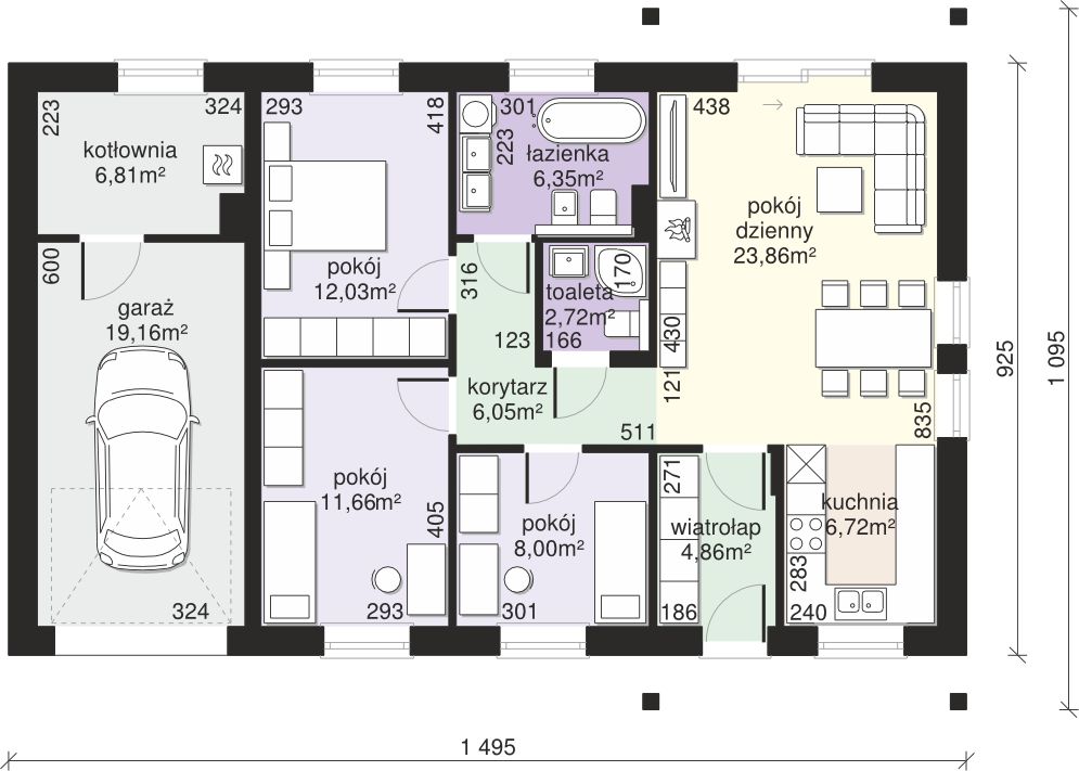 Graficzne opracowanie rzutów poglądowych widocznych na karcie projektu zostało wykonane przez Extradom.pl. Prezentowane przez Extradom.pl wizualizacje wykonane zostały przez autora projektu i należy poczytywać je jedynie za przykład i propozycję wykończenia, wizję architektoniczną autora projektu. Ostateczne wykończenie budynku może nastąpić na wiele sposobów. Szczegółowe rozwiązania zastosowane w oferowanej dokumentacji - w tym również ilość, lokalizacje i wygląd okien, drzwi, kominów - mogą w niewielkim stopniu różnić się od prezentowanej wizualizacji budynku.