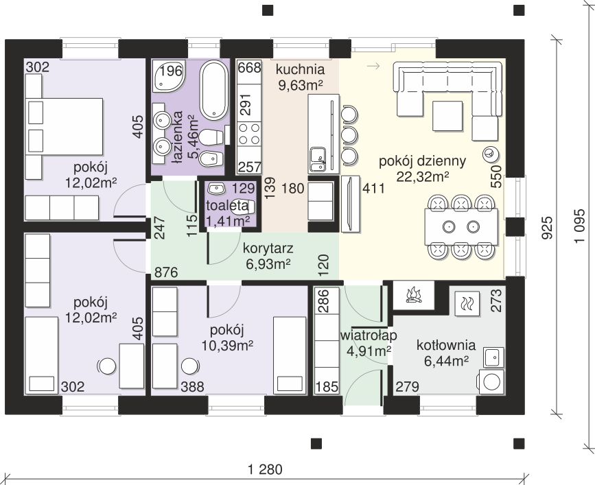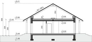 Graficzne opracowanie rzutów poglądowych widocznych na karcie projektu zostało wykonane przez Extradom.pl. Prezentowane przez Extradom.pl wizualizacje wykonane zostały przez autora projektu i należy poczytywać je jedynie za przykład i propozycję wykończenia, wizję architektoniczną autora projektu. Ostateczne wykończenie budynku może nastąpić na wiele sposobów. Szczegółowe rozwiązania zastosowane w oferowanej dokumentacji - w tym również ilość, lokalizacje i wygląd okien, drzwi, kominów - mogą w niewielkim stopniu różnić się od prezentowanej wizualizacji budynku.