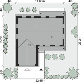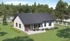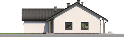 Graficzne opracowanie rzutów poglądowych widocznych na karcie projektu zostało wykonane przez Extradom.pl. Prezentowane przez Extradom.pl wizualizacje wykonane zostały przez autora projektu i należy poczytywać je jedynie za przykład i propozycję wykończenia, wizję architektoniczną autora projektu. Ostateczne wykończenie budynku może nastąpić na wiele sposobów. Szczegółowe rozwiązania zastosowane w oferowanej dokumentacji - w tym również ilość, lokalizacje i wygląd okien, drzwi, kominów - mogą w niewielkim stopniu różnić się od prezentowanej wizualizacji budynku.