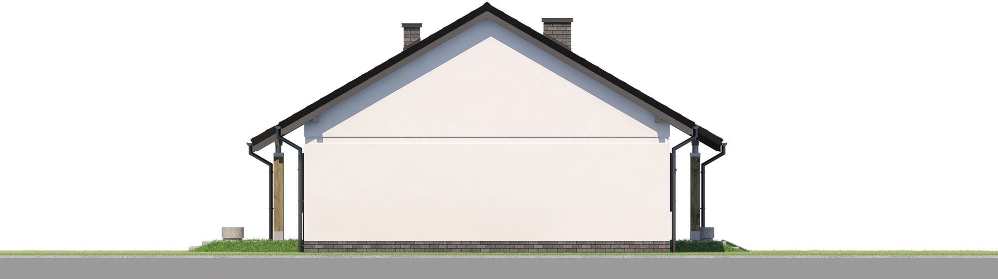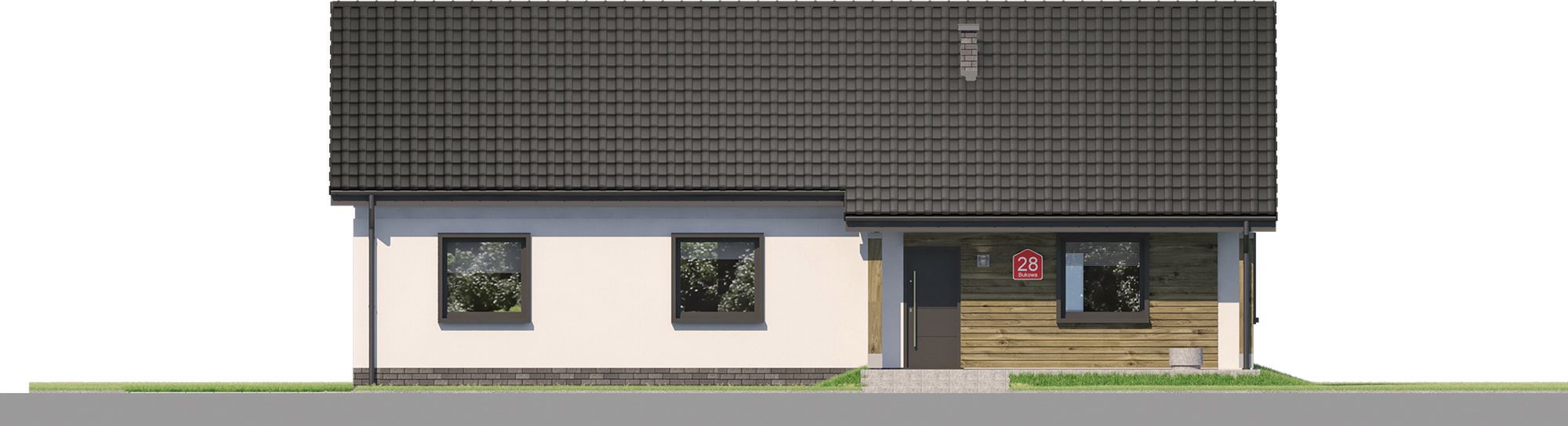 Graficzne opracowanie rzutów poglądowych widocznych na karcie projektu zostało wykonane przez Extradom.pl. Prezentowane przez Extradom.pl wizualizacje wykonane zostały przez autora projektu i należy poczytywać je jedynie za przykład i propozycję wykończenia, wizję architektoniczną autora projektu. Ostateczne wykończenie budynku może nastąpić na wiele sposobów. Szczegółowe rozwiązania zastosowane w oferowanej dokumentacji - w tym również ilość, lokalizacje i wygląd okien, drzwi, kominów - mogą w niewielkim stopniu różnić się od prezentowanej wizualizacji budynku.