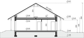 Ściany zewnętrzne: pustak 25 cm, styropian 20 cm. Ściany nośne: pustak 25 cm. Strop: monolityczny żelbetowy. Dach: kąt nachylenia 30°, pokrycie - dachówka ceramiczna lub betonowa. Instalacja solarna.