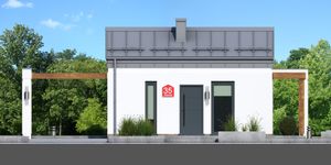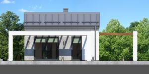 Graficzne opracowanie rzutów poglądowych widocznych na karcie projektu zostało wykonane przez Extradom.pl. Prezentowane przez Extradom.pl wizualizacje wykonane zostały przez autora projektu i należy poczytywać je jedynie za przykład i propozycję wykończenia, wizję architektoniczną autora projektu. Ostateczne wykończenie budynku może nastąpić na wiele sposobów. Szczegółowe rozwiązania zastosowane w oferowanej dokumentacji - w tym również ilość, lokalizacje i wygląd okien, drzwi, kominów - mogą w niewielkim stopniu różnić się od prezentowanej wizualizacji budynku.