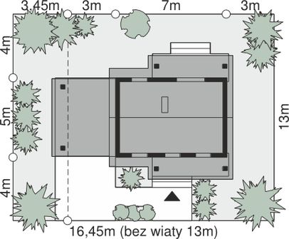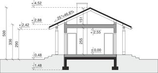 Graficzne opracowanie rzutów poglądowych widocznych na karcie projektu zostało wykonane przez Extradom.pl. Prezentowane przez Extradom.pl wizualizacje wykonane zostały przez autora projektu i należy poczytywać je jedynie za przykład i propozycję wykończenia, wizję architektoniczną autora projektu. Ostateczne wykończenie budynku może nastąpić na wiele sposobów. Szczegółowe rozwiązania zastosowane w oferowanej dokumentacji - w tym również ilość, lokalizacje i wygląd okien, drzwi, kominów - mogą w niewielkim stopniu różnić się od prezentowanej wizualizacji budynku.