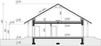 Graficzne opracowanie rzutów poglądowych widocznych na karcie projektu zostało wykonane przez Extradom.pl. Prezentowane przez Extradom.pl wizualizacje wykonane zostały przez autora projektu i należy poczytywać je jedynie za przykład i propozycję wykończenia, wizję architektoniczną autora projektu. Ostateczne wykończenie budynku może nastąpić na wiele sposobów. Szczegółowe rozwiązania zastosowane w oferowanej dokumentacji - w tym również ilość, lokalizacje i wygląd okien, drzwi, kominów - mogą w niewielkim stopniu różnić się od prezentowanej wizualizacji budynku.