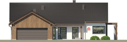 Graficzne opracowanie rzutów poglądowych widocznych na karcie projektu zostało wykonane przez Extradom.pl. Prezentowane przez Extradom.pl wizualizacje wykonane zostały przez autora projektu i należy poczytywać je jedynie za przykład i propozycję wykończenia, wizję architektoniczną autora projektu. Ostateczne wykończenie budynku może nastąpić na wiele sposobów. Szczegółowe rozwiązania zastosowane w oferowanej dokumentacji - w tym również ilość, lokalizacje i wygląd okien, drzwi, kominów - mogą w niewielkim stopniu różnić się od prezentowanej wizualizacji budynku.