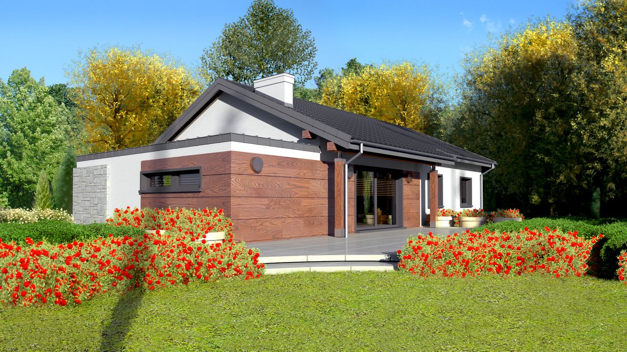 Zdecydowaliśmy się na projekt Dom przy Bukowej 6 KRK1288, ponieważ odpowiadał nam pod wieloma względami. Od początku zależało nam na domu parterowym, a dodatkowo wymiary i forma budynku idealnie pasowały do usytuowania go na naszej działce. Wewnętrzny wygląd bryły bardzo nam się spodobał, a układ pomieszczeń wewnątrz odpowiadał naszym oczekiwaniom. Prosta konstrukcja domu jest naprawdę łatwa w budowie, tak więc realizacja odbyła się bez jakichkolwiek problemów i wszystko udało się wykonać bardzo sprawnie. Stan surowy zamknięty skończyliśmy jesienią, przez okres zimy wstrzymaliśmy wszystkie prace, a wiosną zaczęliśmy już tynkować. Musze przyznać, że jesteśmy bardzo zadowoleni z przebiegu całej inwestycji. Postawienie i wykończenie domu zajęło nam zaledwie rok. Budynek powstał przy użyciu bloczków H+H klasy 600. Zrezygnowaliśmy z wykonania monolitycznego, betonowego stropu oraz wykonania więźby dachowej tradycyjną metodą. Zamiast tego skorzystaliśmy z prefabrykowanej, gotowej więźby, która zastępuje obie te konstrukcje jednocześnie. Ściany z zewnątrz ociepliliśmy 15 cm warstwą grafitowego styropianu o współczynniku przenikania ciepła 0,032 λ. Ogrzewamy za pomocą pieca, w którym palimy ekogroszkiem. W pierwszym roku od zamieszkania w nowym domu zużyliśmy ok. 4,5 - 5 ton opału - oprócz utrzymania odpowiedniej temperatury wewnątrz podczas zimy, piec przez cały rok służy nam do ogrzewania wody użytkowej.Do projektu domu parterowego Dom przy Bukowej 6 KRK1288 wprowadziliśmy kilka modyfikacji. Zmieniliśmy lokalizację garażu i obecnie, zamiast od salonu, znajduje się od strony sypialni. Zrezygnowaliśmy z najmniejszego, środkowego pokoju - w tym miejscu powstał korytarzyk prowadzący do drzwi od garażu. Nie robiliśmy ścianki działowej między łazienką a pralnią - teraz jest to jedno większe pomieszczenie. Dodatkowo, kosztem części powiększonej łazienki wygospodarowaliśmy małą osobną toaletę, zaś jej pierwotna powierzchnię przyłączyliśmy do spiżarki. Ponadto, nieco zamknęliśmy kuchnię na salon, a także poszerzyliśmy garaż o 1 m. Obecnie nieco żałuję, iż nie zdecydowałem się na powiększenie go do dwustanowiskowego - dzięki temu zwiększyłby się także metraż kotłowni, co niewątpliwie by się przydało. Myślę, że warto rozważyć to na etapie adaptacji. Powierzchnia użytkowa przewidziana w projekcie Dom przy Bukowej 6 KRK1288 jest w zupełności wystarczająca dla naszej 3-osobowej rodziny i mamy jeszcze jeden wolny pokój. Układ naszego domu w całości mi odpowiada, a zewnętrzny wygląd bryły w pełni satysfakcjonuje. Ciekawie prezentują się wysunięte połacie dachu - myślę, że wyglądałyby jeszcze lepiej, gdyby je jeszcze wydłużyć. Dużą zaletą projektu jest jego prostota, gdyż nie uwzględniono w nim żadnych skomplikowanych elementów. Pozdrawiam.