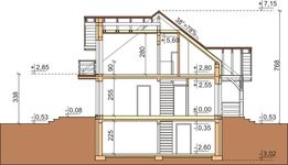 Graficzne opracowanie rzutów poglądowych widocznych na karcie projektu zostało wykonane przez Extradom.pl. Prezentowane przez Extradom.pl wizualizacje wykonane zostały przez autora projektu i należy poczytywać je jedynie za przykład i propozycję wykończenia, wizję architektoniczną autora projektu. Ostateczne wykończenie budynku może nastąpić na wiele sposobów. Szczegółowe rozwiązania zastosowane w oferowanej dokumentacji - w tym również ilość, lokalizacje i wygląd okien, drzwi, kominów - mogą w niewielkim stopniu różnić się od prezentowanej wizualizacji budynku.