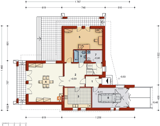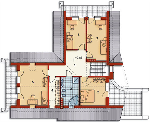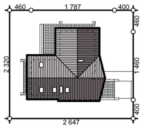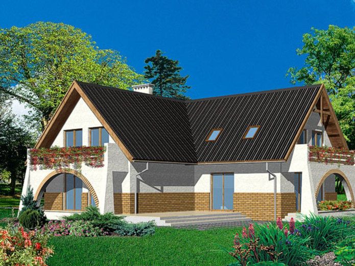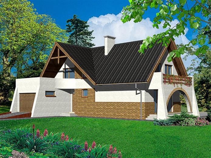 Graficzne opracowanie rzutów poglądowych widocznych na karcie projektu zostało wykonane przez Extradom.pl. Prezentowane przez Extradom.pl wizualizacje wykonane zostały przez autora projektu i należy poczytywać je jedynie za przykład i propozycję wykończenia, wizję architektoniczną autora projektu. Ostateczne wykończenie budynku może nastąpić na wiele sposobów. Szczegółowe rozwiązania zastosowane w oferowanej dokumentacji - w tym również ilość, lokalizacje i wygląd okien, drzwi, kominów - mogą w niewielkim stopniu różnić się od prezentowanej wizualizacji budynku.