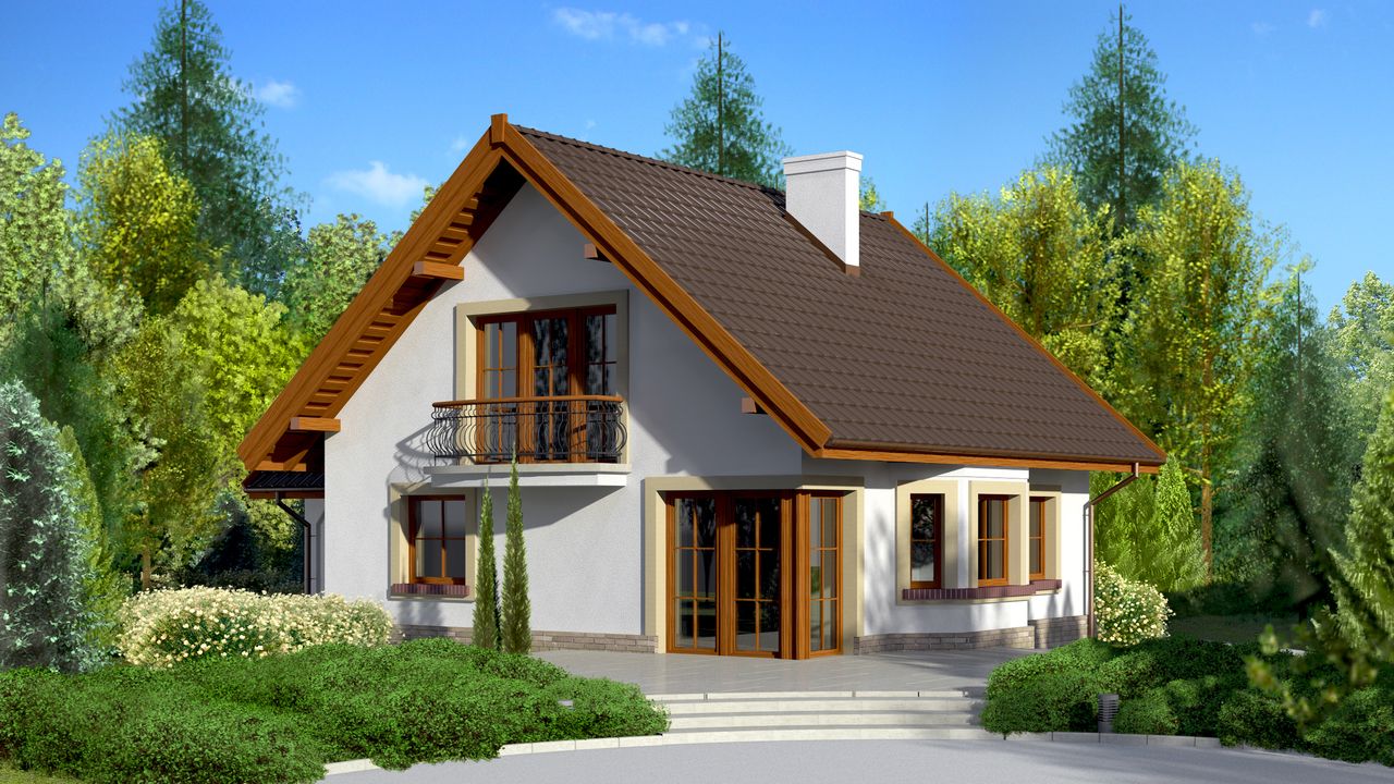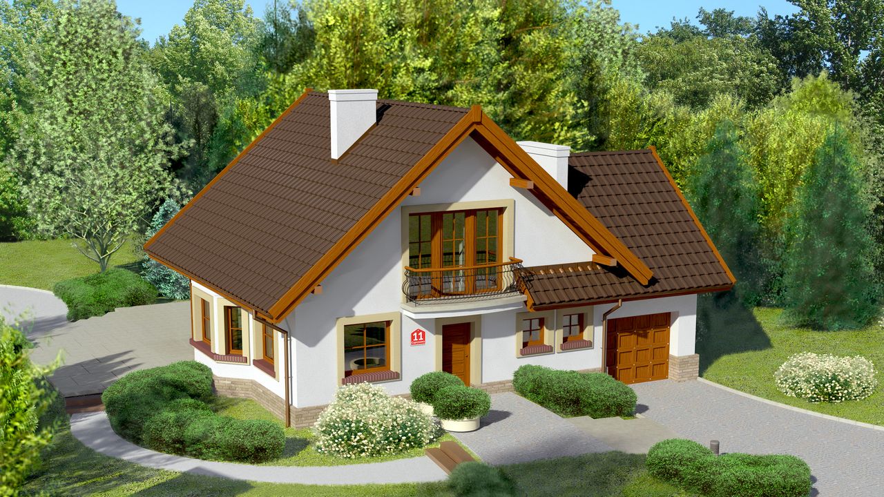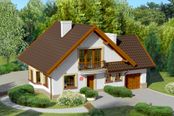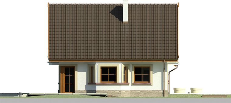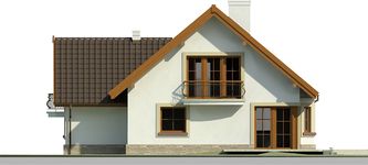 Graficzne opracowanie rzutów poglądowych widocznych na karcie projektu zostało wykonane przez Extradom.pl. Prezentowane przez Extradom.pl wizualizacje wykonane zostały przez autora projektu i należy poczytywać je jedynie za przykład i propozycję wykończenia, wizję architektoniczną autora projektu. Ostateczne wykończenie budynku może nastąpić na wiele sposobów. Szczegółowe rozwiązania zastosowane w oferowanej dokumentacji - w tym również ilość, lokalizacje i wygląd okien, drzwi, kominów - mogą w niewielkim stopniu różnić się od prezentowanej wizualizacji budynku.