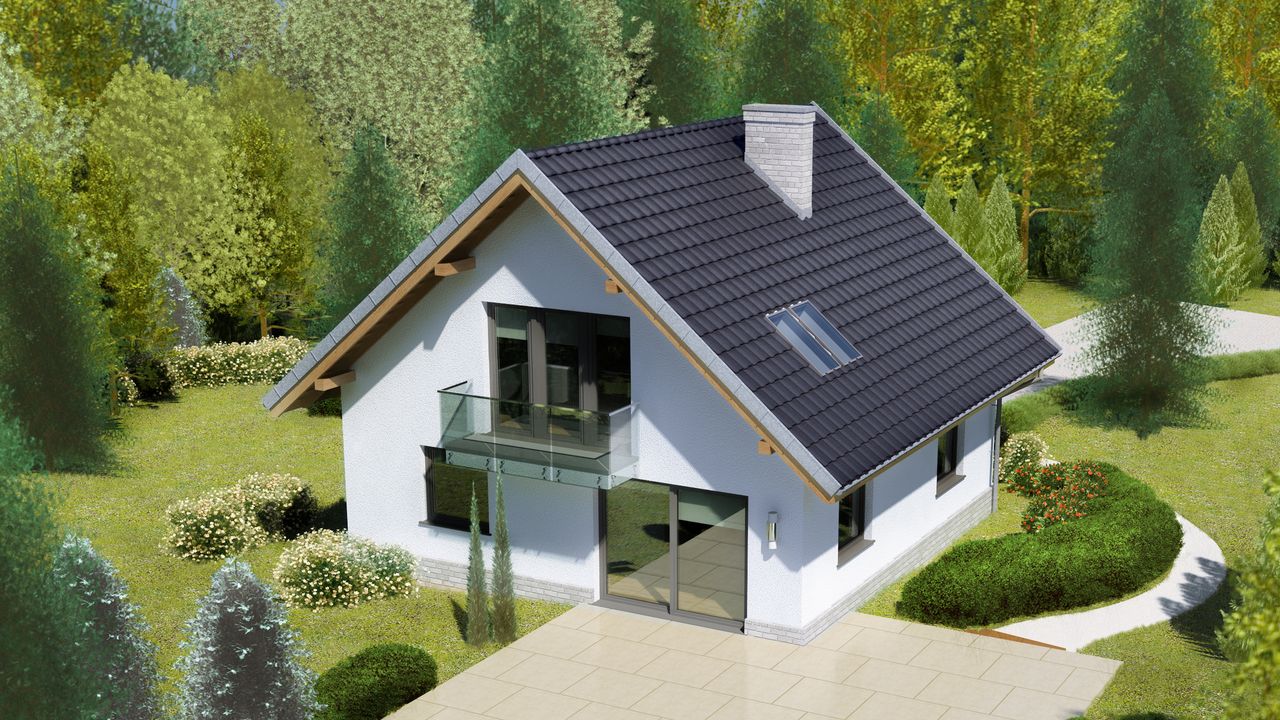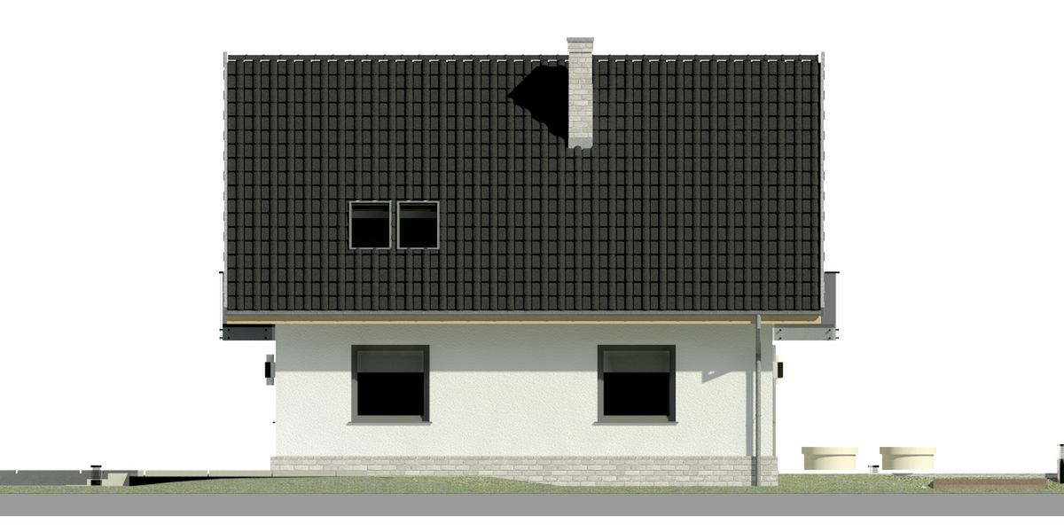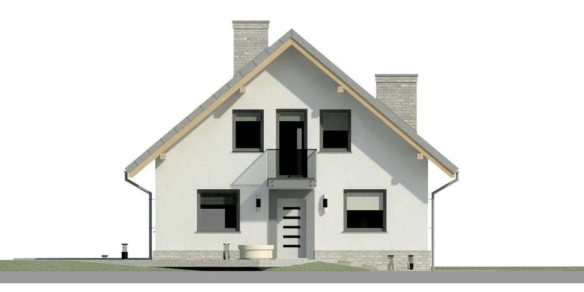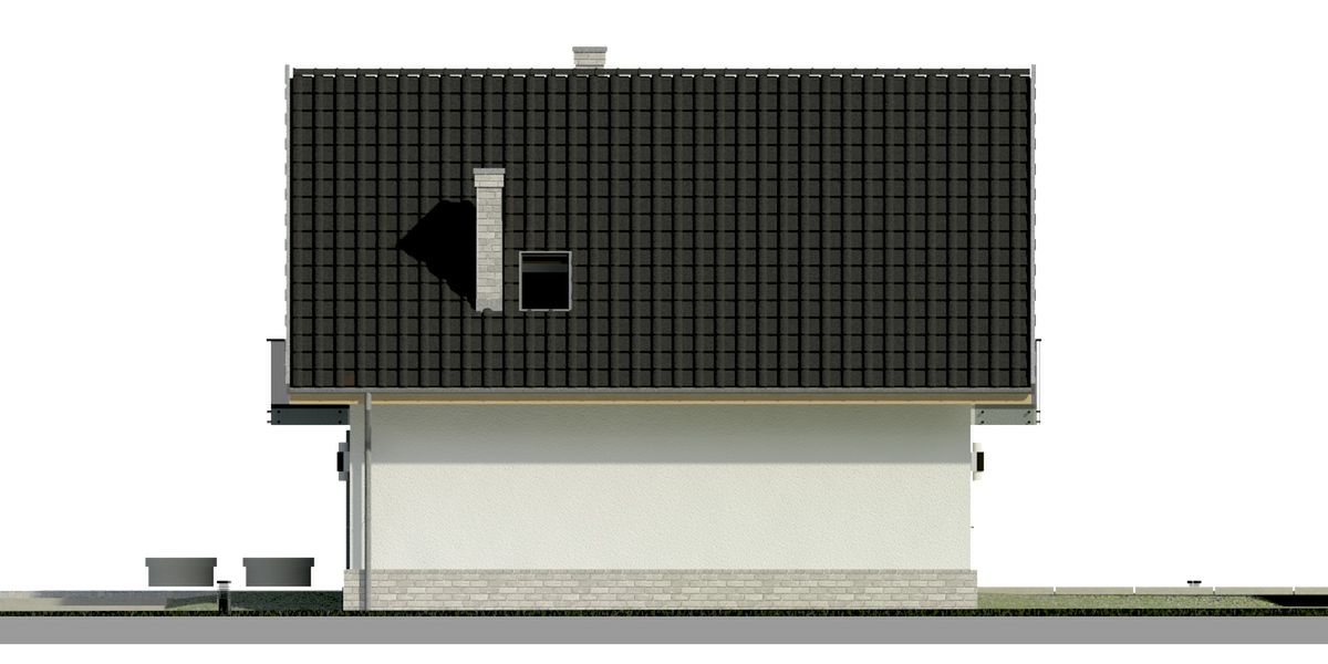 Graficzne opracowanie rzutów poglądowych widocznych na karcie projektu zostało wykonane przez Extradom.pl. Prezentowane przez Extradom.pl wizualizacje wykonane zostały przez autora projektu i należy poczytywać je jedynie za przykład i propozycję wykończenia, wizję architektoniczną autora projektu. Ostateczne wykończenie budynku może nastąpić na wiele sposobów. Szczegółowe rozwiązania zastosowane w oferowanej dokumentacji - w tym również ilość, lokalizacje i wygląd okien, drzwi, kominów - mogą w niewielkim stopniu różnić się od prezentowanej wizualizacji budynku.