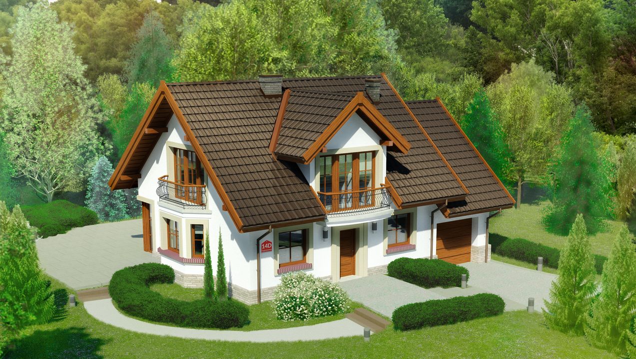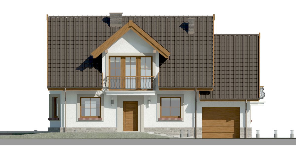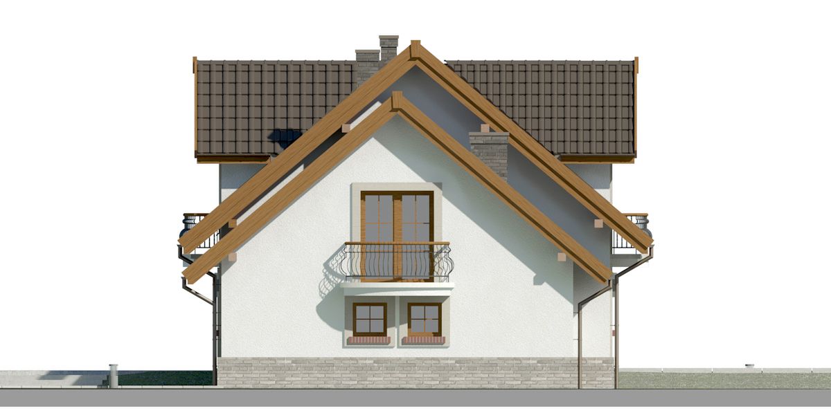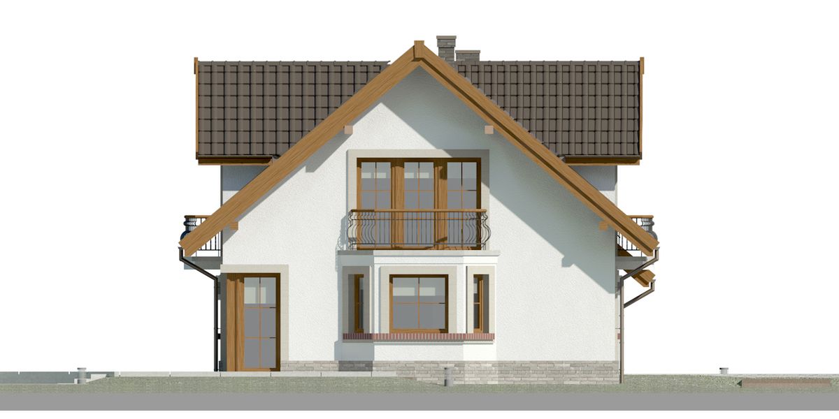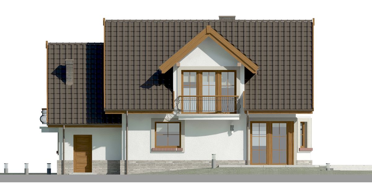 Graficzne opracowanie rzutów poglądowych widocznych na karcie projektu zostało wykonane przez Extradom.pl. Prezentowane przez Extradom.pl wizualizacje wykonane zostały przez autora projektu i należy poczytywać je jedynie za przykład i propozycję wykończenia, wizję architektoniczną autora projektu. Ostateczne wykończenie budynku może nastąpić na wiele sposobów. Szczegółowe rozwiązania zastosowane w oferowanej dokumentacji - w tym również ilość, lokalizacje i wygląd okien, drzwi, kominów - mogą w niewielkim stopniu różnić się od prezentowanej wizualizacji budynku.