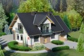 Graficzne opracowanie rzutów poglądowych widocznych na karcie projektu zostało wykonane przez Extradom.pl. Prezentowane przez Extradom.pl wizualizacje wykonane zostały przez autora projektu i należy poczytywać je jedynie za przykład i propozycję wykończenia, wizję architektoniczną autora projektu. Ostateczne wykończenie budynku może nastąpić na wiele sposobów. Szczegółowe rozwiązania zastosowane w oferowanej dokumentacji - w tym również ilość, lokalizacje i wygląd okien, drzwi, kominów - mogą w niewielkim stopniu różnić się od prezentowanej wizualizacji budynku.