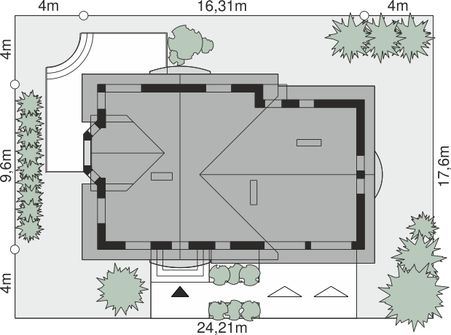 Graficzne opracowanie rzutów poglądowych widocznych na karcie projektu zostało wykonane przez Extradom.pl. Prezentowane przez Extradom.pl wizualizacje wykonane zostały przez autora projektu i należy poczytywać je jedynie za przykład i propozycję wykończenia, wizję architektoniczną autora projektu. Ostateczne wykończenie budynku może nastąpić na wiele sposobów. Szczegółowe rozwiązania zastosowane w oferowanej dokumentacji - w tym również ilość, lokalizacje i wygląd okien, drzwi, kominów - mogą w niewielkim stopniu różnić się od prezentowanej wizualizacji budynku.