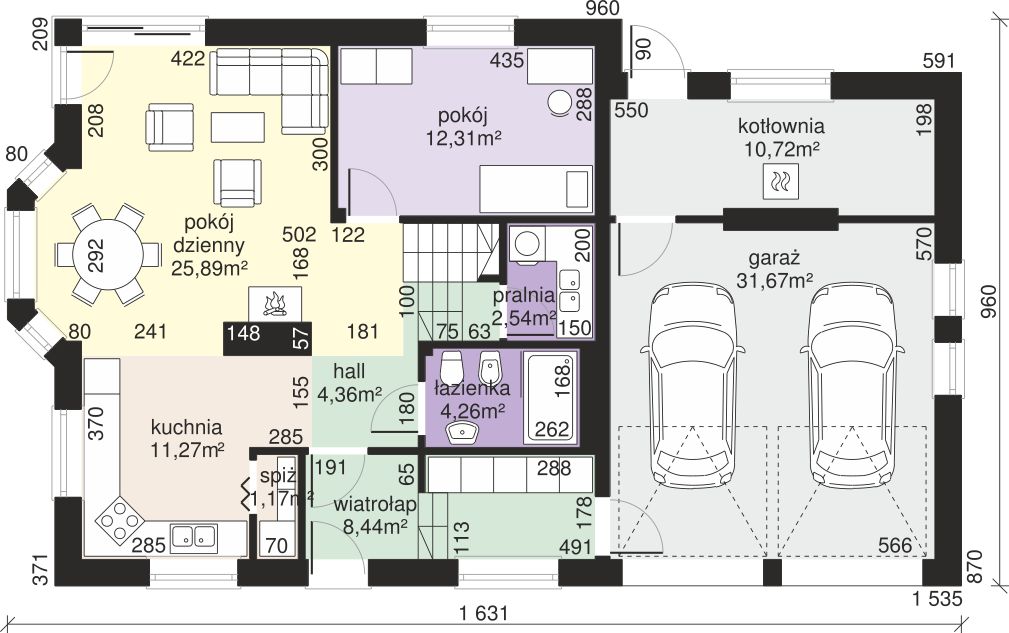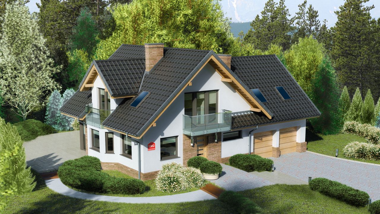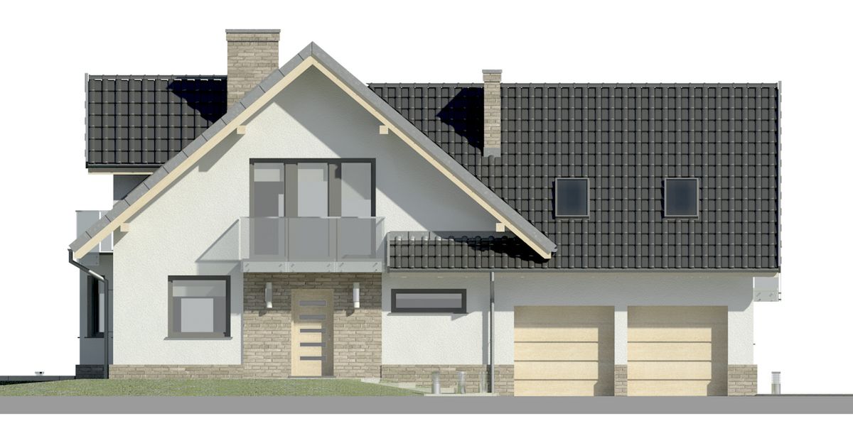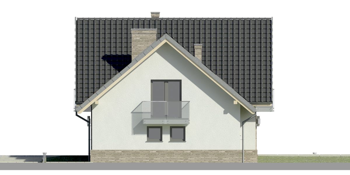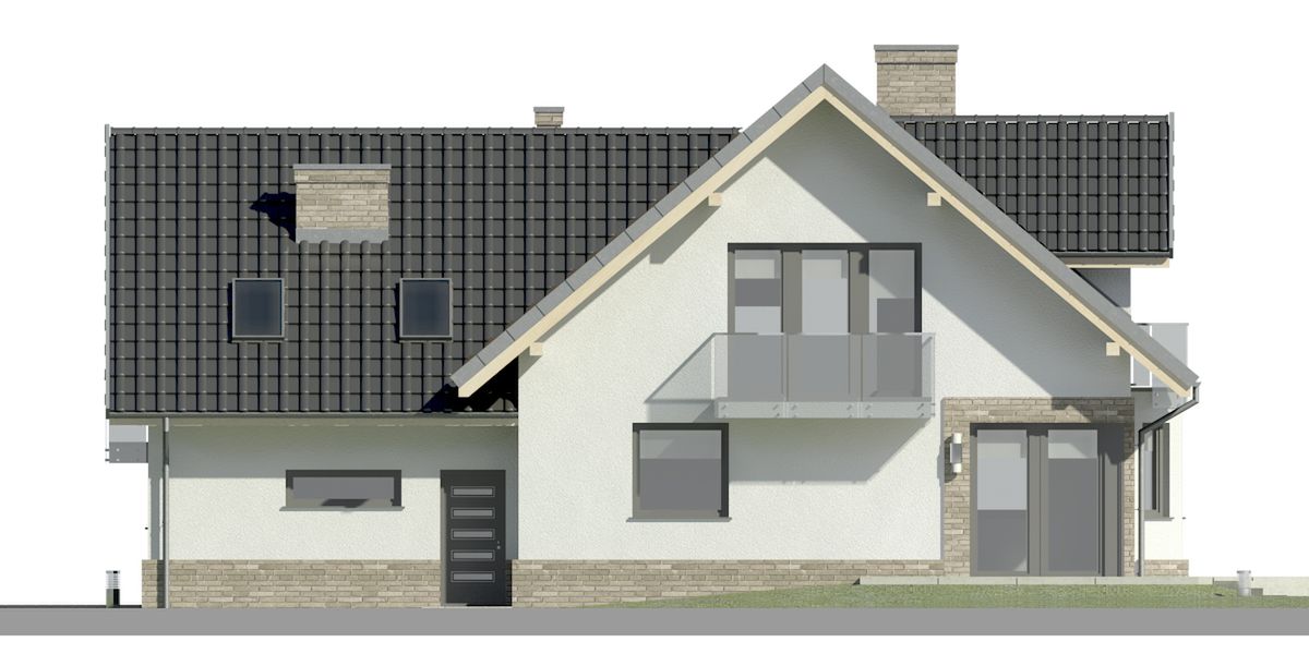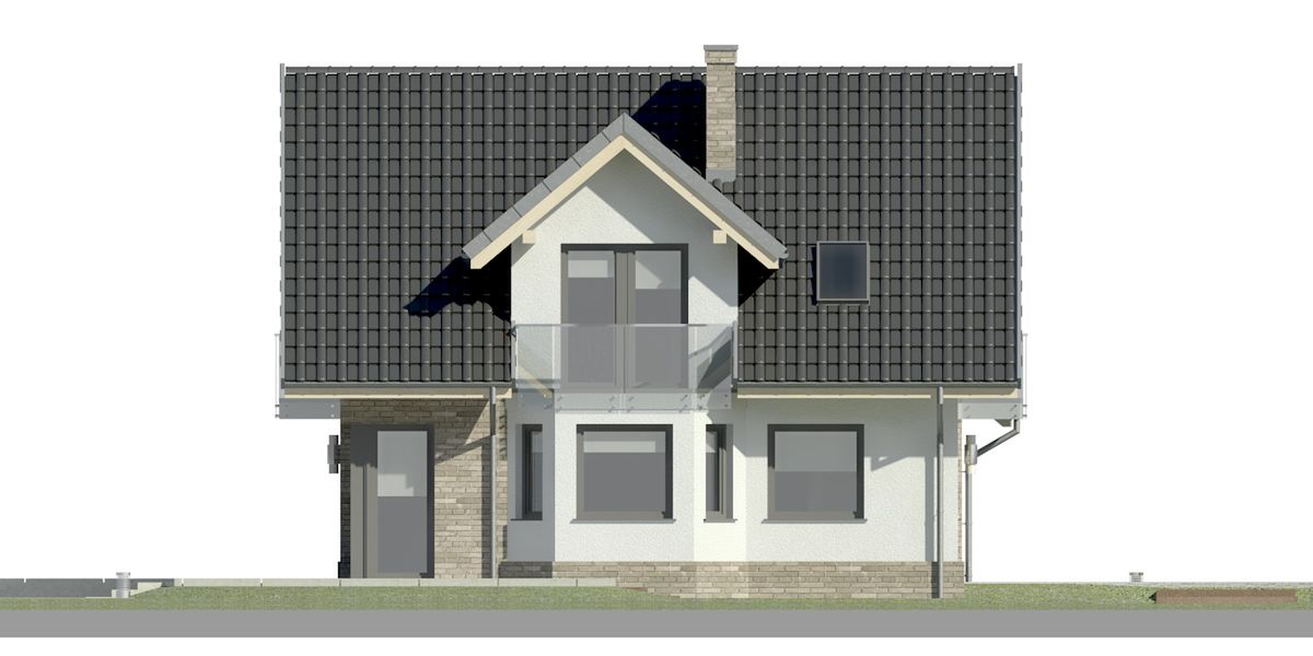 Graficzne opracowanie rzutów poglądowych widocznych na karcie projektu zostało wykonane przez Extradom.pl. Prezentowane przez Extradom.pl wizualizacje wykonane zostały przez autora projektu i należy poczytywać je jedynie za przykład i propozycję wykończenia, wizję architektoniczną autora projektu. Ostateczne wykończenie budynku może nastąpić na wiele sposobów. Szczegółowe rozwiązania zastosowane w oferowanej dokumentacji - w tym również ilość, lokalizacje i wygląd okien, drzwi, kominów - mogą w niewielkim stopniu różnić się od prezentowanej wizualizacji budynku.