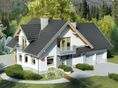 Ściany zewnętrzne: pustak 25 cm, styropian 20 cm. Ściany nośne: pustak 25 cm. Strop: monolityczny żelbetowy. Dach: kąt nachylenia 40°, pokrycie - dachówka ceramiczna lub betonowa.