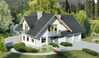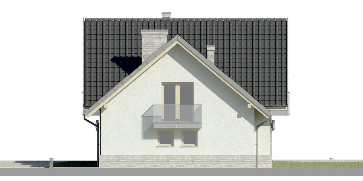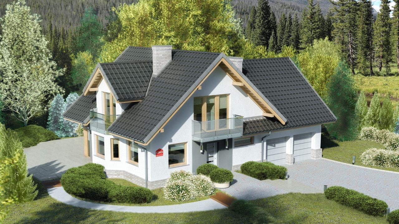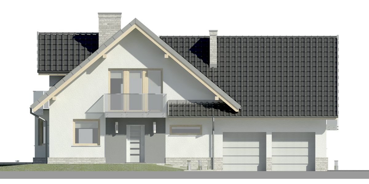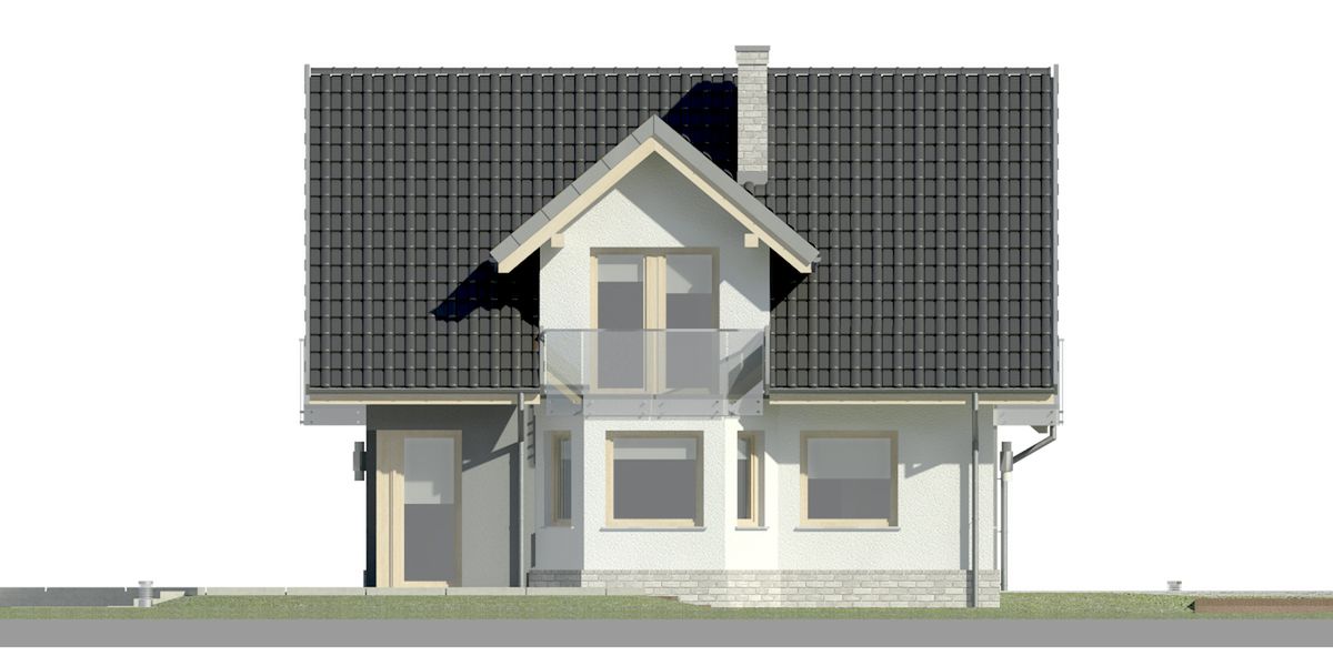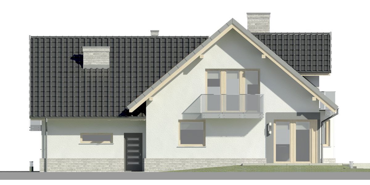 Graficzne opracowanie rzutów poglądowych widocznych na karcie projektu zostało wykonane przez Extradom.pl. Prezentowane przez Extradom.pl wizualizacje wykonane zostały przez autora projektu i należy poczytywać je jedynie za przykład i propozycję wykończenia, wizję architektoniczną autora projektu. Ostateczne wykończenie budynku może nastąpić na wiele sposobów. Szczegółowe rozwiązania zastosowane w oferowanej dokumentacji - w tym również ilość, lokalizacje i wygląd okien, drzwi, kominów - mogą w niewielkim stopniu różnić się od prezentowanej wizualizacji budynku.