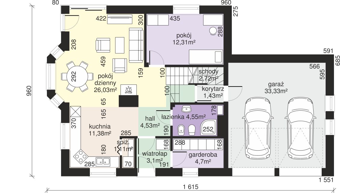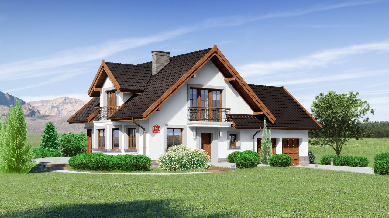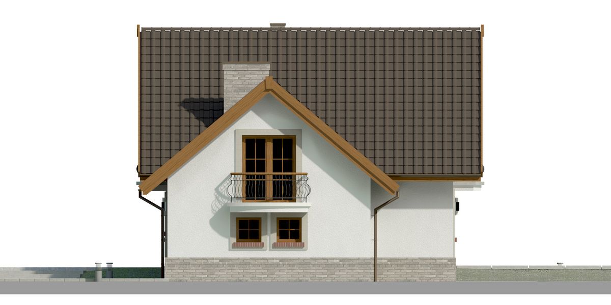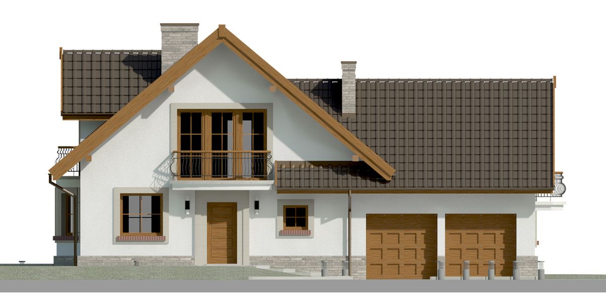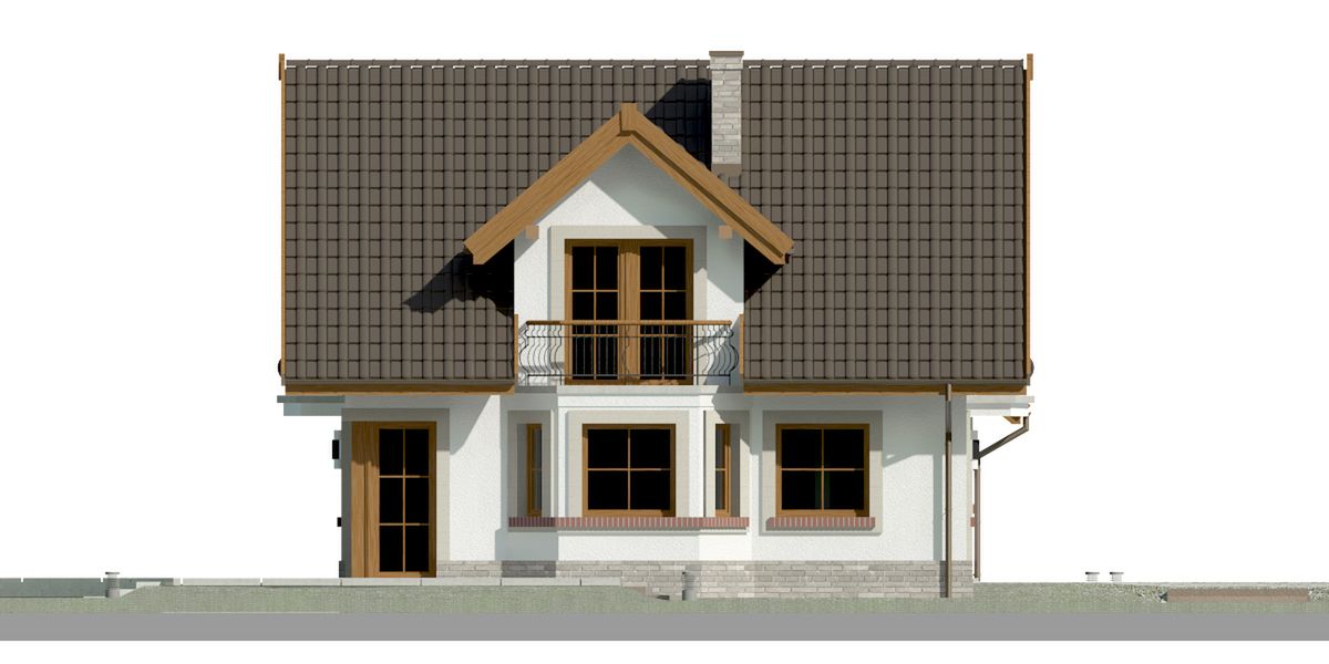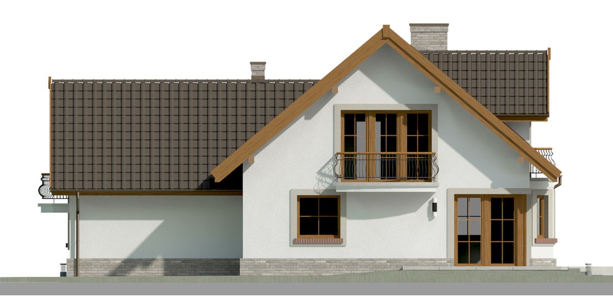 Graficzne opracowanie rzutów poglądowych widocznych na karcie projektu zostało wykonane przez Extradom.pl. Prezentowane przez Extradom.pl wizualizacje wykonane zostały przez autora projektu i należy poczytywać je jedynie za przykład i propozycję wykończenia, wizję architektoniczną autora projektu. Ostateczne wykończenie budynku może nastąpić na wiele sposobów. Szczegółowe rozwiązania zastosowane w oferowanej dokumentacji - w tym również ilość, lokalizacje i wygląd okien, drzwi, kominów - mogą w niewielkim stopniu różnić się od prezentowanej wizualizacji budynku.