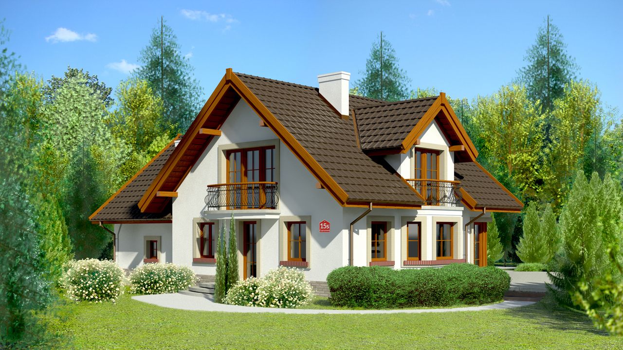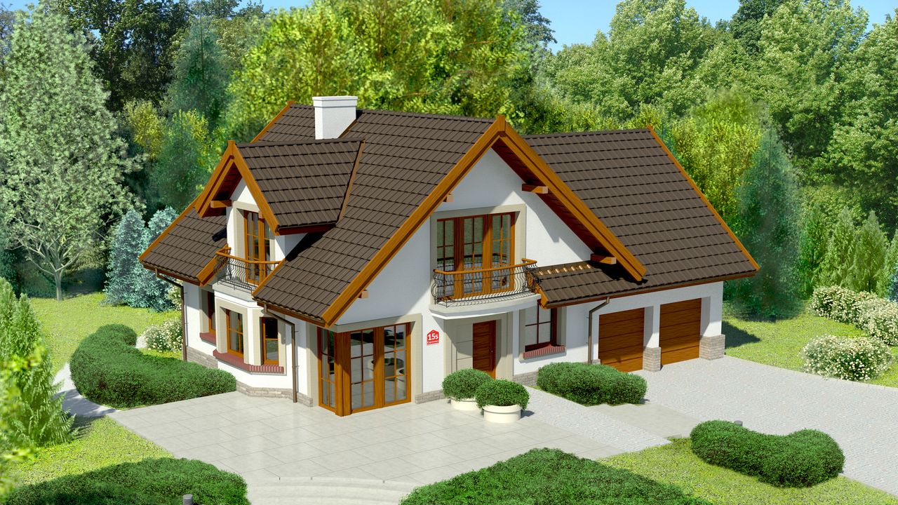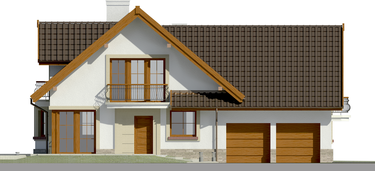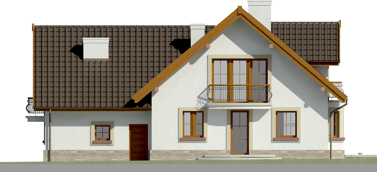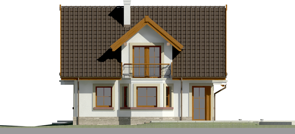 Graficzne opracowanie rzutów poglądowych widocznych na karcie projektu zostało wykonane przez Extradom.pl. Prezentowane przez Extradom.pl wizualizacje wykonane zostały przez autora projektu i należy poczytywać je jedynie za przykład i propozycję wykończenia, wizję architektoniczną autora projektu. Ostateczne wykończenie budynku może nastąpić na wiele sposobów. Szczegółowe rozwiązania zastosowane w oferowanej dokumentacji - w tym również ilość, lokalizacje i wygląd okien, drzwi, kominów - mogą w niewielkim stopniu różnić się od prezentowanej wizualizacji budynku.