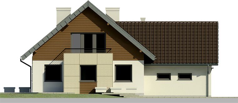Graficzne opracowanie rzutów poglądowych widocznych na karcie projektu zostało wykonane przez Extradom.pl. Prezentowane przez Extradom.pl wizualizacje wykonane zostały przez autora projektu i należy poczytywać je jedynie za przykład i propozycję wykończenia, wizję architektoniczną autora projektu. Ostateczne wykończenie budynku może nastąpić na wiele sposobów. Szczegółowe rozwiązania zastosowane w oferowanej dokumentacji - w tym również ilość, lokalizacje i wygląd okien, drzwi, kominów - mogą w niewielkim stopniu różnić się od prezentowanej wizualizacji budynku.