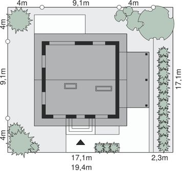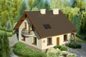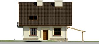 Graficzne opracowanie rzutów poglądowych widocznych na karcie projektu zostało wykonane przez Extradom.pl. Prezentowane przez Extradom.pl wizualizacje wykonane zostały przez autora projektu i należy poczytywać je jedynie za przykład i propozycję wykończenia, wizję architektoniczną autora projektu. Ostateczne wykończenie budynku może nastąpić na wiele sposobów. Szczegółowe rozwiązania zastosowane w oferowanej dokumentacji - w tym również ilość, lokalizacje i wygląd okien, drzwi, kominów - mogą w niewielkim stopniu różnić się od prezentowanej wizualizacji budynku.