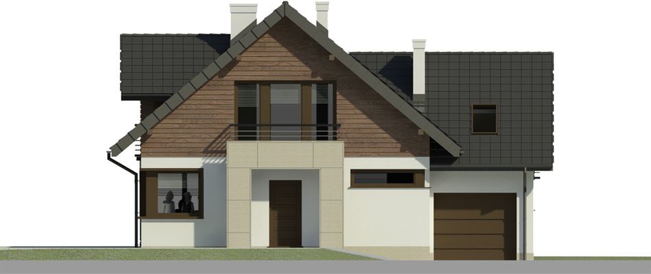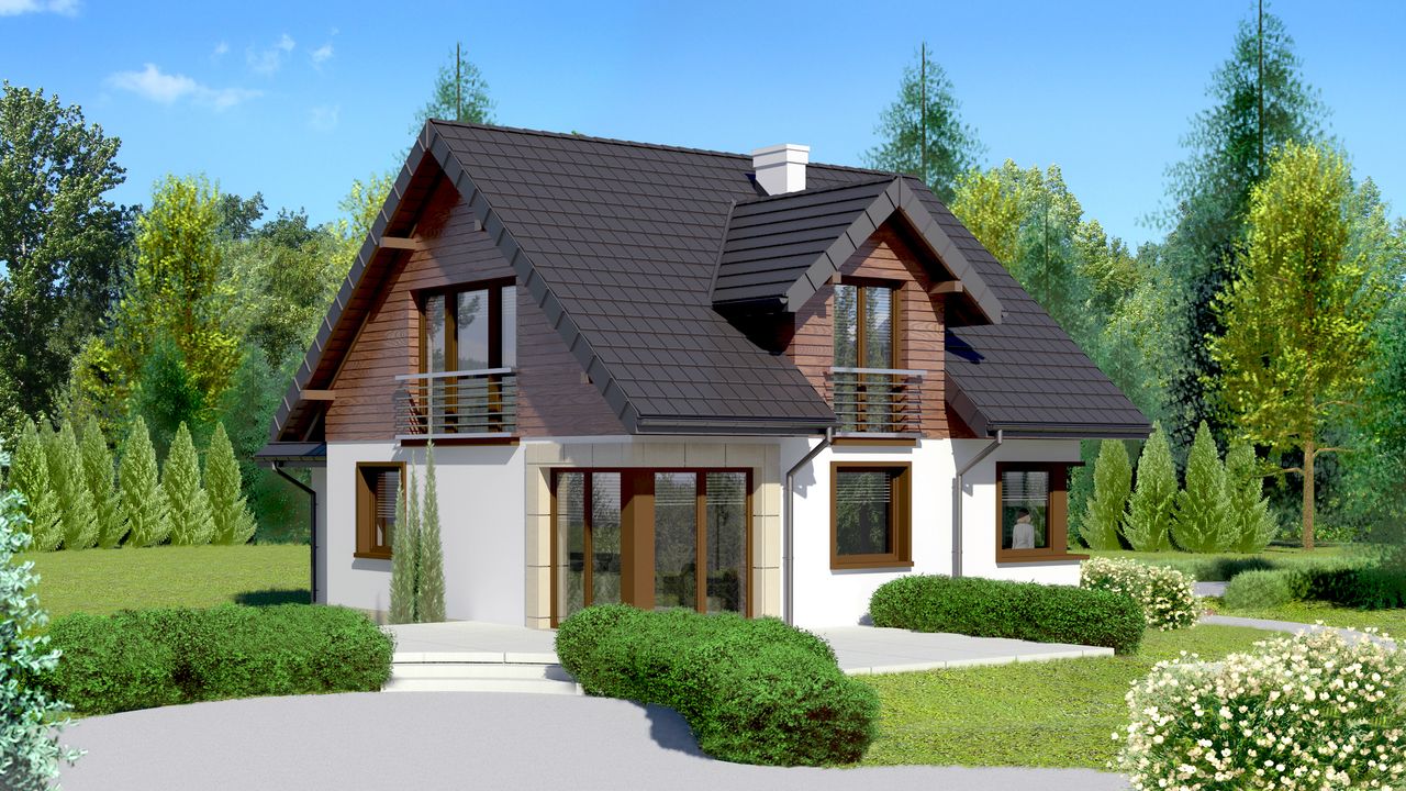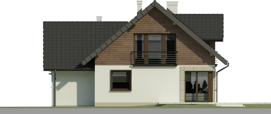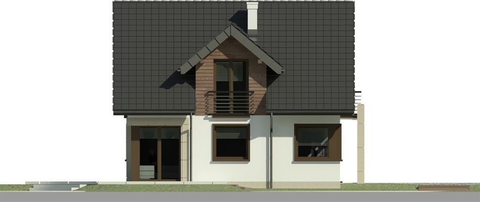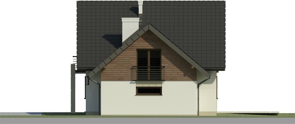 Graficzne opracowanie rzutów poglądowych widocznych na karcie projektu zostało wykonane przez Extradom.pl. Prezentowane przez Extradom.pl wizualizacje wykonane zostały przez autora projektu i należy poczytywać je jedynie za przykład i propozycję wykończenia, wizję architektoniczną autora projektu. Ostateczne wykończenie budynku może nastąpić na wiele sposobów. Szczegółowe rozwiązania zastosowane w oferowanej dokumentacji - w tym również ilość, lokalizacje i wygląd okien, drzwi, kominów - mogą w niewielkim stopniu różnić się od prezentowanej wizualizacji budynku.
