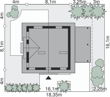 Ściany zewnętrzne: pustak 25 cm, styropian 20 cm. Ściany nośne: pustak 25 cm. Strop: monolityczny żelbetowy. Dach: kąt nachylenia 40°, pokrycie - dachówka ceramiczna lub betonowa. Instalacja solarna.