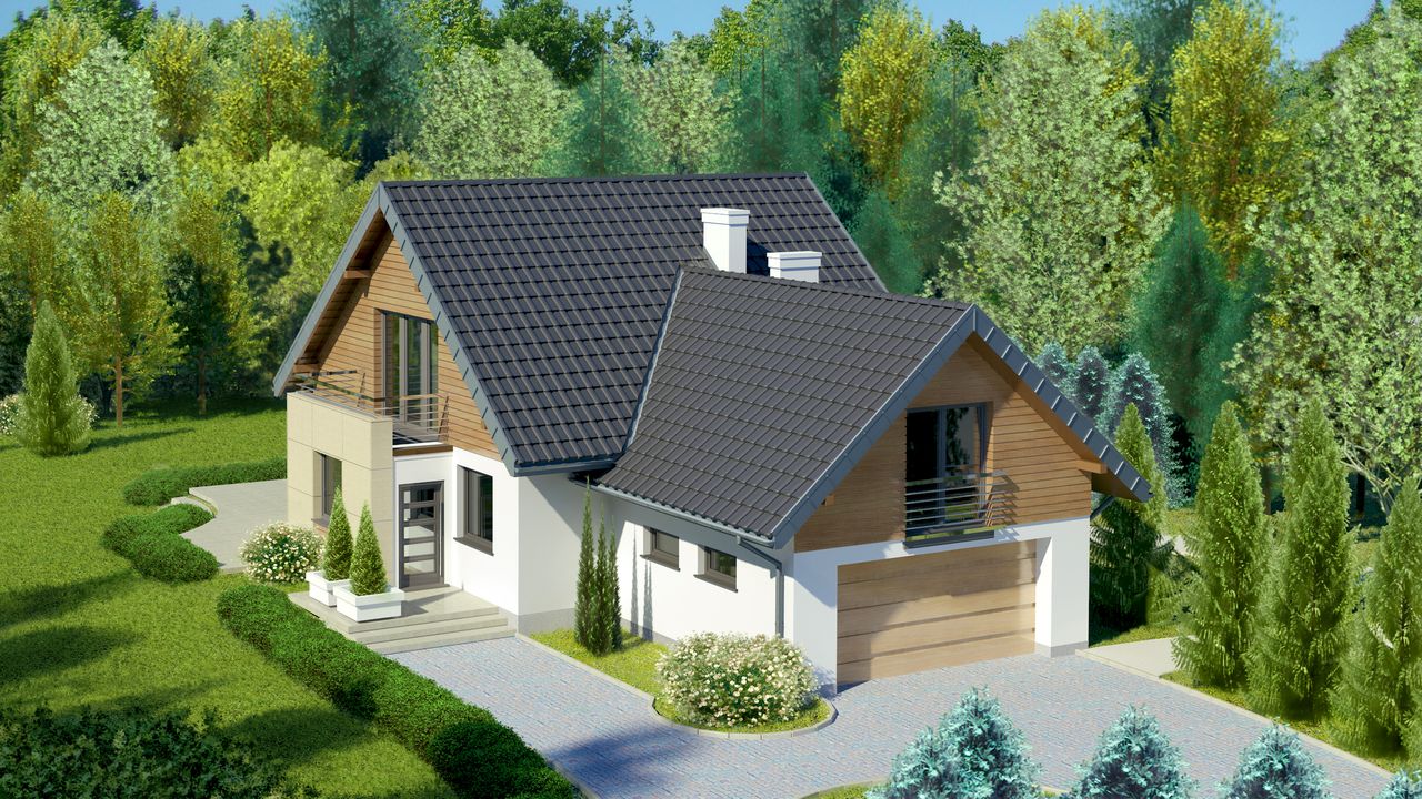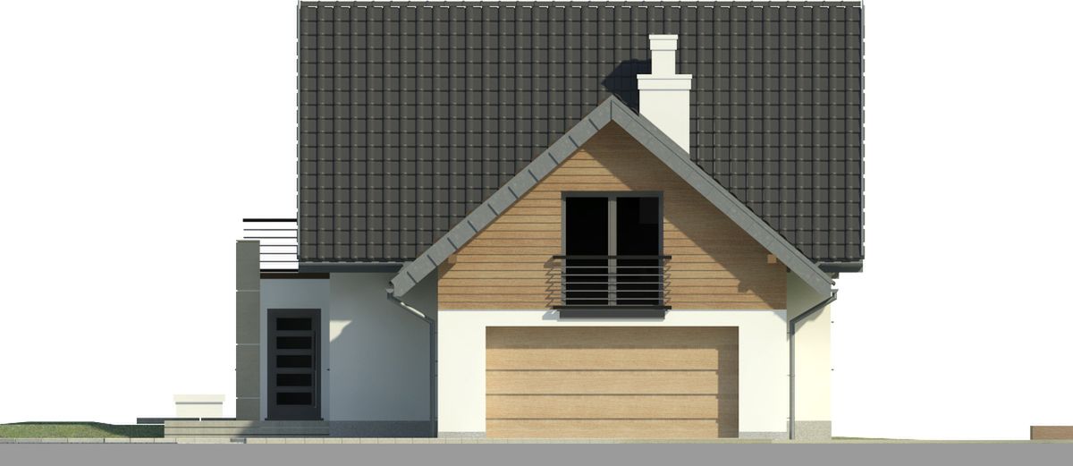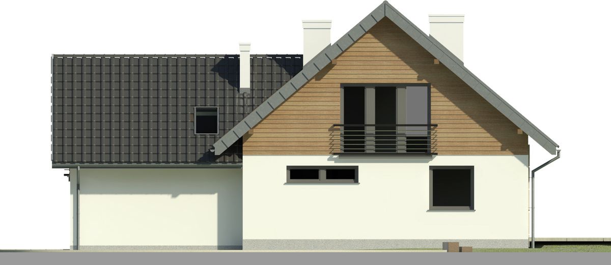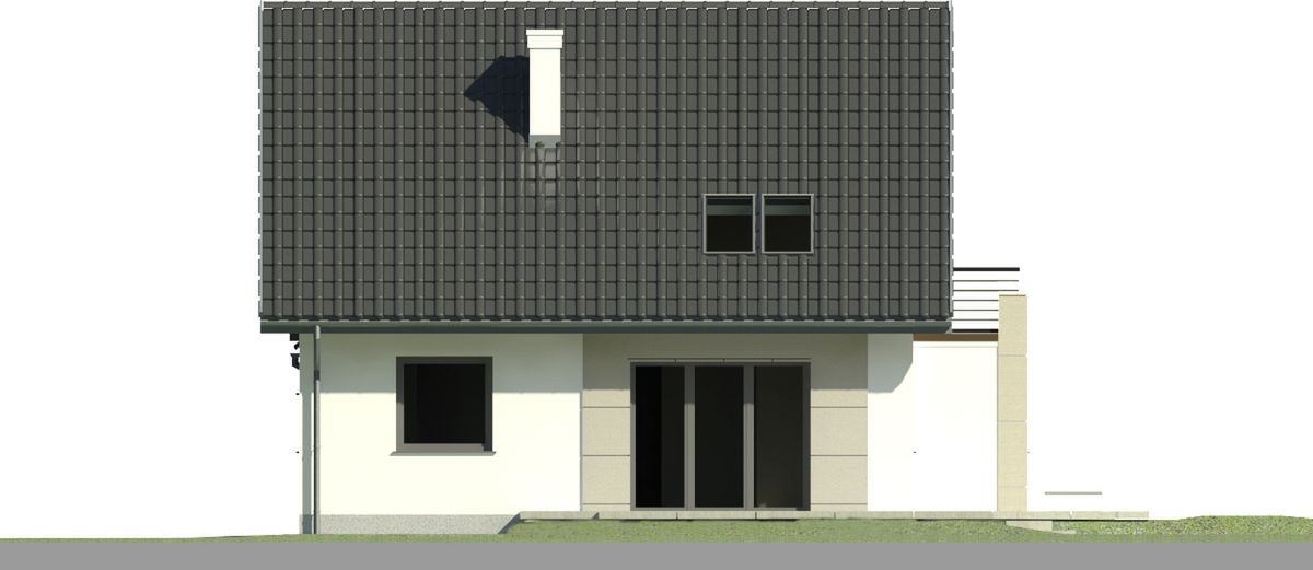 Graficzne opracowanie rzutów poglądowych widocznych na karcie projektu zostało wykonane przez Extradom.pl. Prezentowane przez Extradom.pl wizualizacje wykonane zostały przez autora projektu i należy poczytywać je jedynie za przykład i propozycję wykończenia, wizję architektoniczną autora projektu. Ostateczne wykończenie budynku może nastąpić na wiele sposobów. Szczegółowe rozwiązania zastosowane w oferowanej dokumentacji - w tym również ilość, lokalizacje i wygląd okien, drzwi, kominów - mogą w niewielkim stopniu różnić się od prezentowanej wizualizacji budynku.
