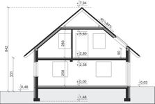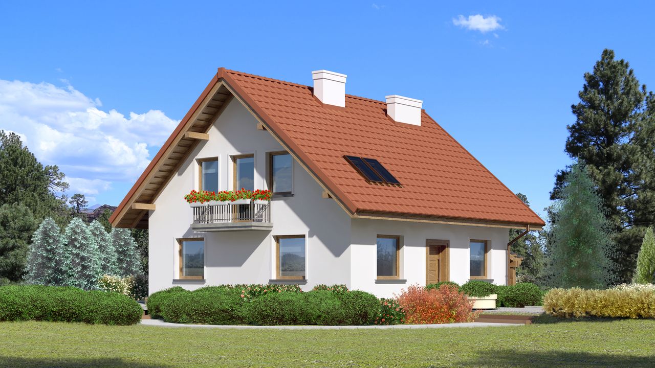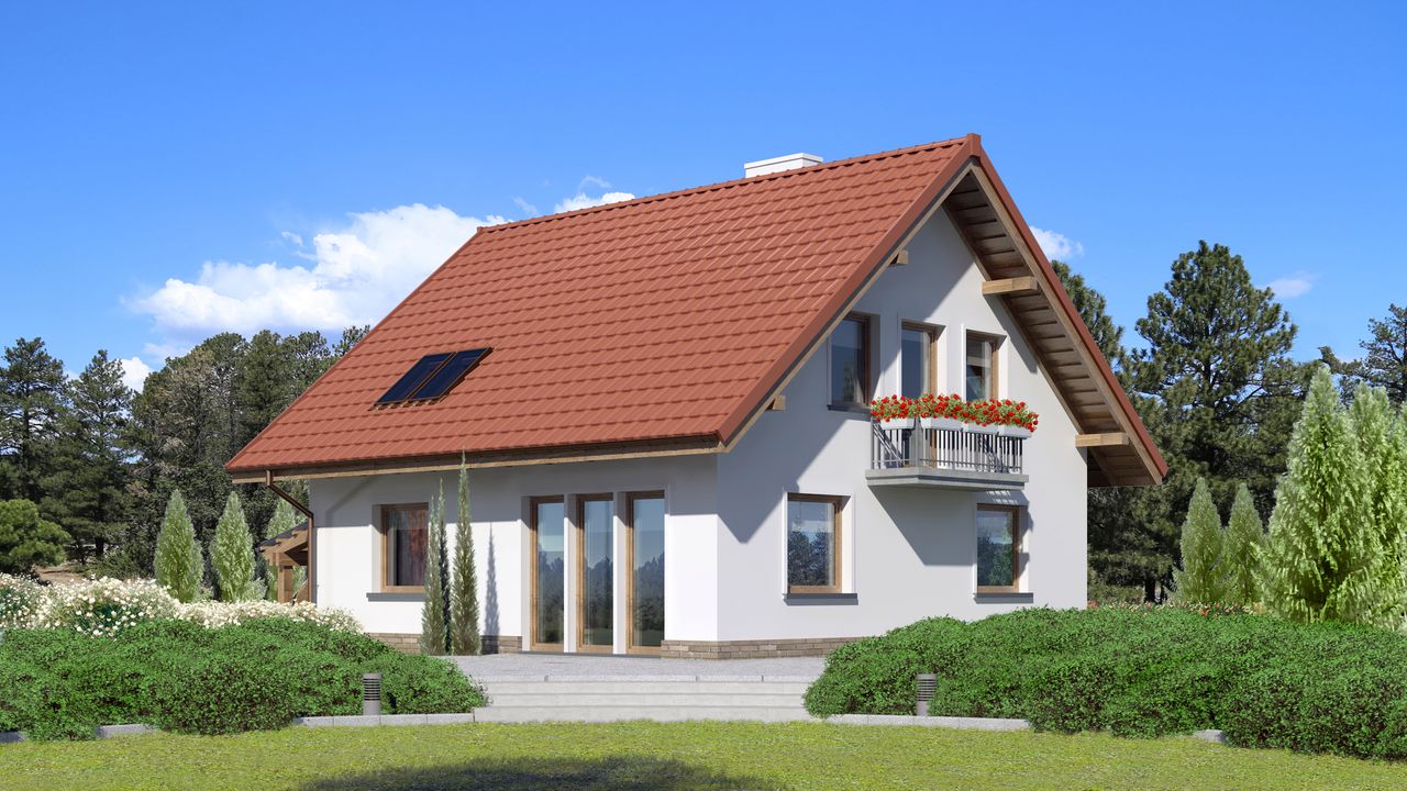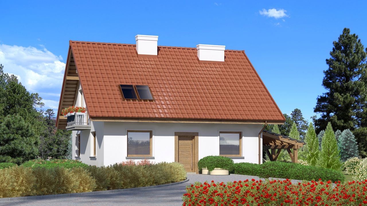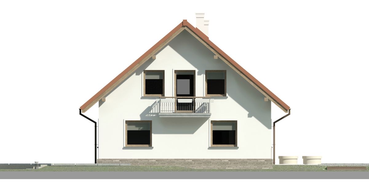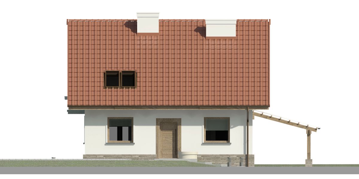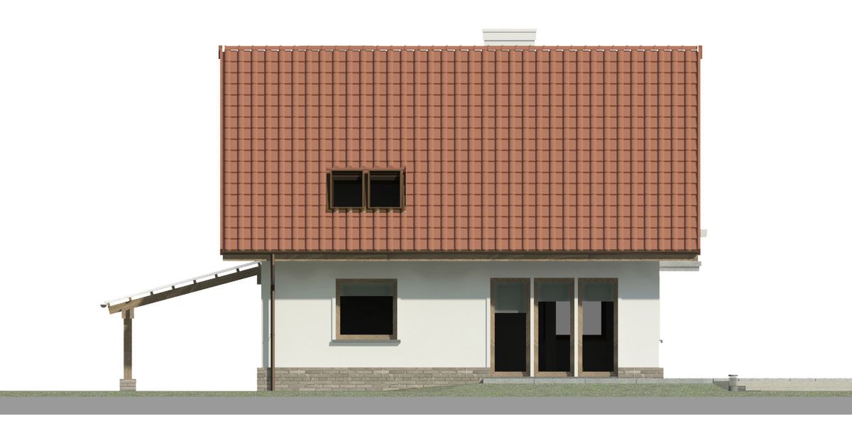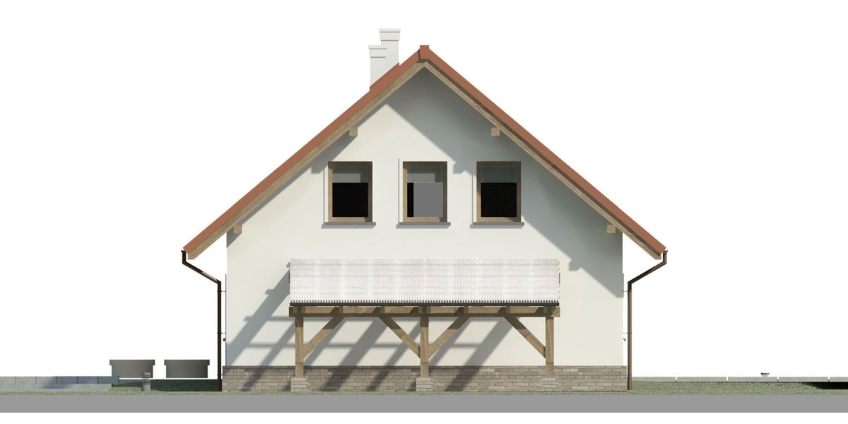 Graficzne opracowanie rzutów poglądowych widocznych na karcie projektu zostało wykonane przez Extradom.pl. Prezentowane przez Extradom.pl wizualizacje wykonane zostały przez autora projektu i należy poczytywać je jedynie za przykład i propozycję wykończenia, wizję architektoniczną autora projektu. Ostateczne wykończenie budynku może nastąpić na wiele sposobów. Szczegółowe rozwiązania zastosowane w oferowanej dokumentacji - w tym również ilość, lokalizacje i wygląd okien, drzwi, kominów - mogą w niewielkim stopniu różnić się od prezentowanej wizualizacji budynku.