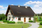 Graficzne opracowanie rzutów poglądowych widocznych na karcie projektu zostało wykonane przez Extradom.pl. Prezentowane przez Extradom.pl wizualizacje wykonane zostały przez autora projektu i należy poczytywać je jedynie za przykład i propozycję wykończenia, wizję architektoniczną autora projektu. Ostateczne wykończenie budynku może nastąpić na wiele sposobów. Szczegółowe rozwiązania zastosowane w oferowanej dokumentacji - w tym również ilość, lokalizacje i wygląd okien, drzwi, kominów - mogą w niewielkim stopniu różnić się od prezentowanej wizualizacji budynku.