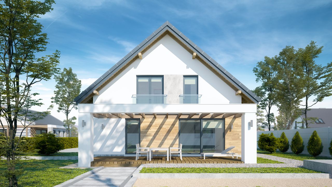 Dom przy Cyprysowej 54 to idealna propozycja dla 4-5 osobowej rodziny, która szuka funkcjonalnego domu z poddaszem użytkowym w tradycyjnym stylu. Prosta bryła z dwuspadowym dachem łączy klasyczną estetykę z przemyślanym układem wnętrz, oferując komfort na co dzień.