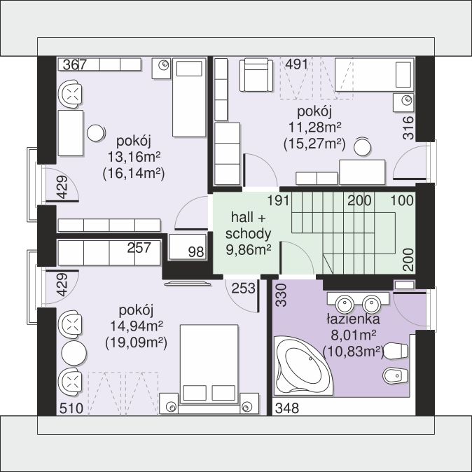 Poddasze to prywatna przestrzeń domowników, zaprojektowana z myślą o odpoczynku. Znajdują się tu trzy komfortowe pokoje, które idealnie sprawdzą się jako sypialnie dla rodziców i dzieci. Dzięki zastosowaniu czterech okien dachowych wszystkie pomieszczenia są jasne i pełne naturalnego światła. Na tej kondygnacji mieści się również duża, w pełni funkcjonalna łazienka dostępna z korytarza dla wszystkich mieszkańców.